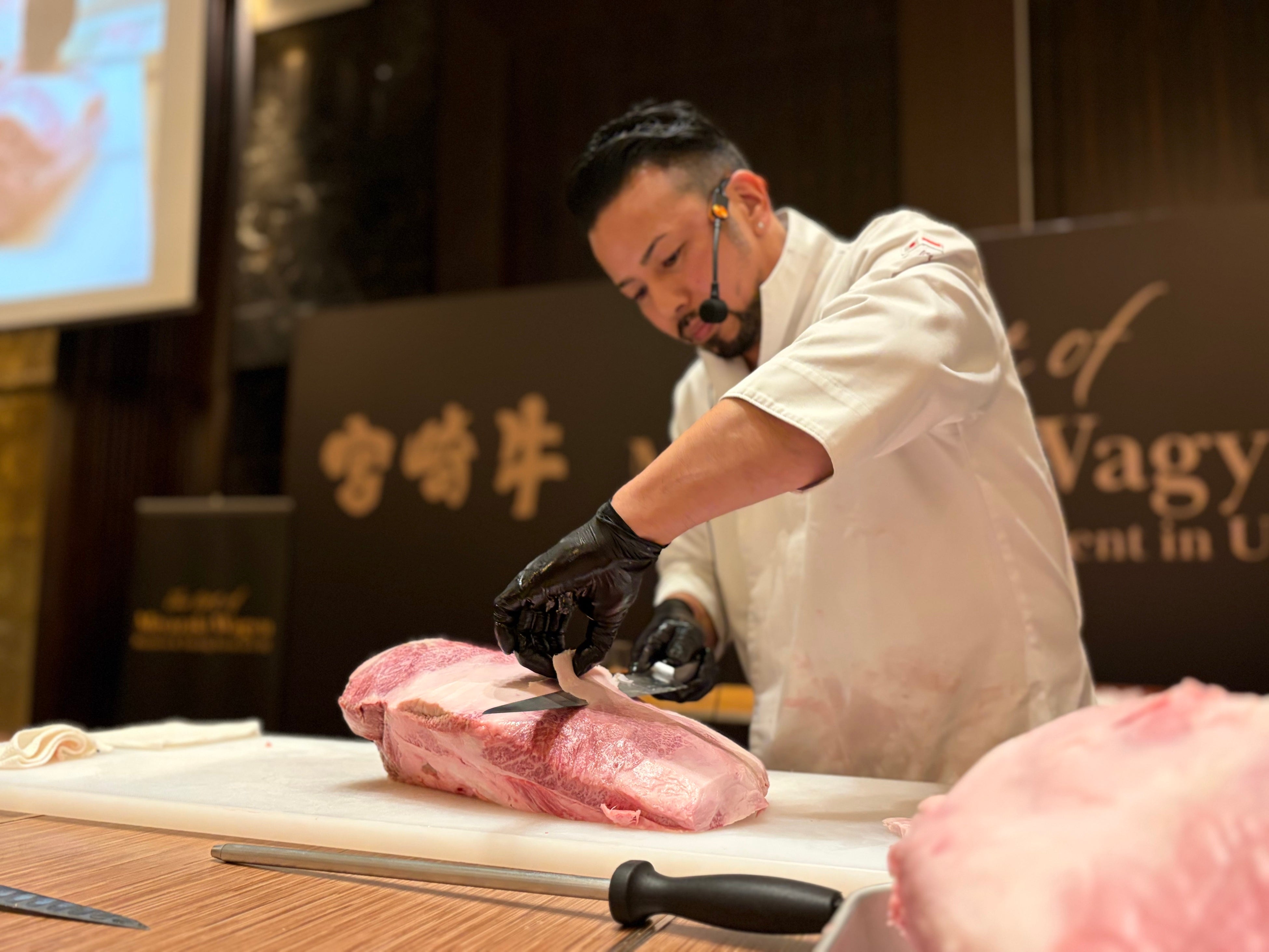 ・カッティング際には、カットと同時にその部位の肉質の特徴やカット厚の説明をすることで、実際に宮崎牛を利用する現地のシェフ目線での説明を心がけた。