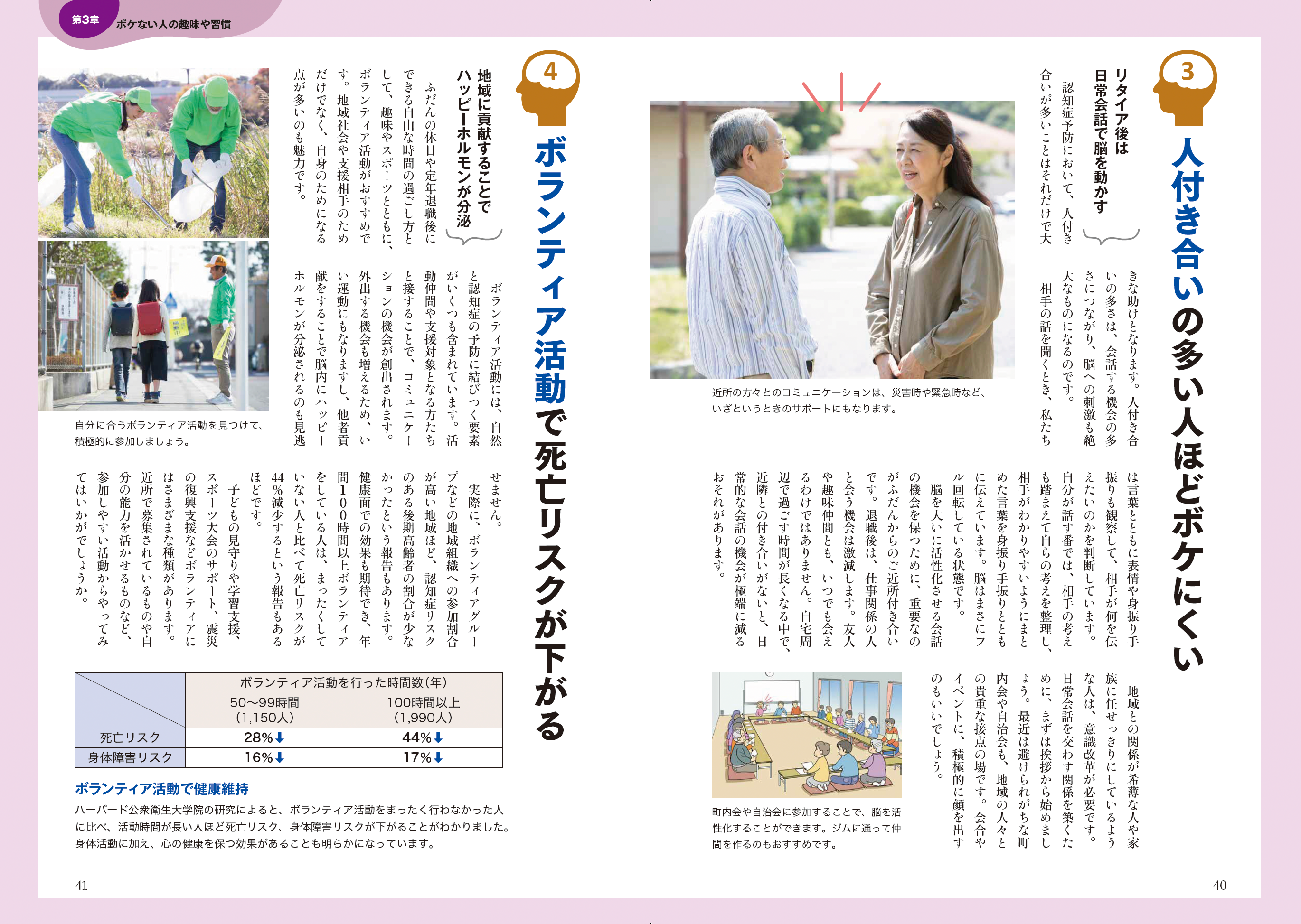 本誌はボケない人たちが実践している生活習慣の数々をわかりやすく紹介。実践することでさまざまな病気の予防にもつながり、充実した毎日を送れるようになります。