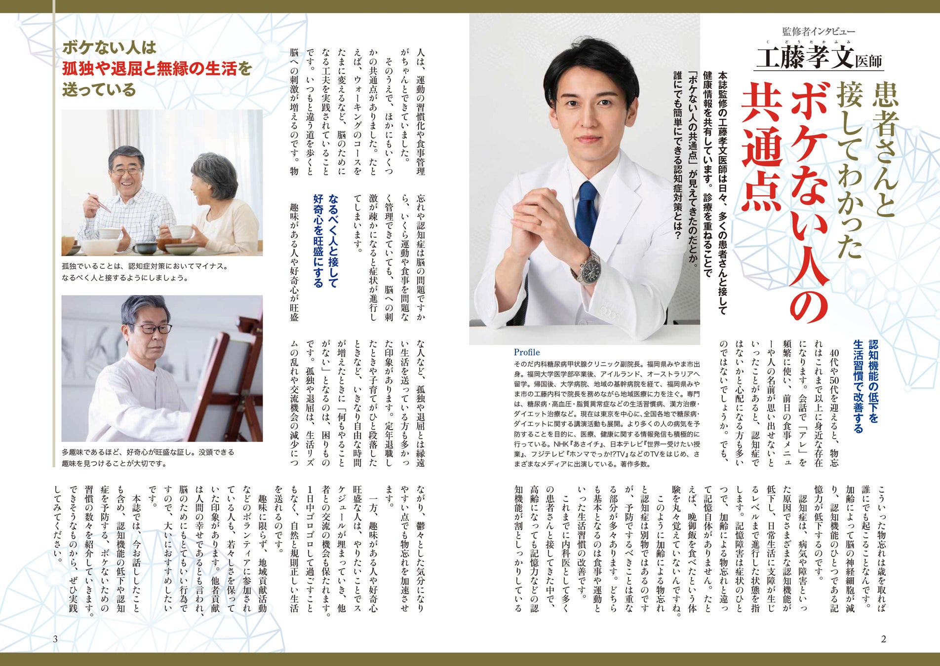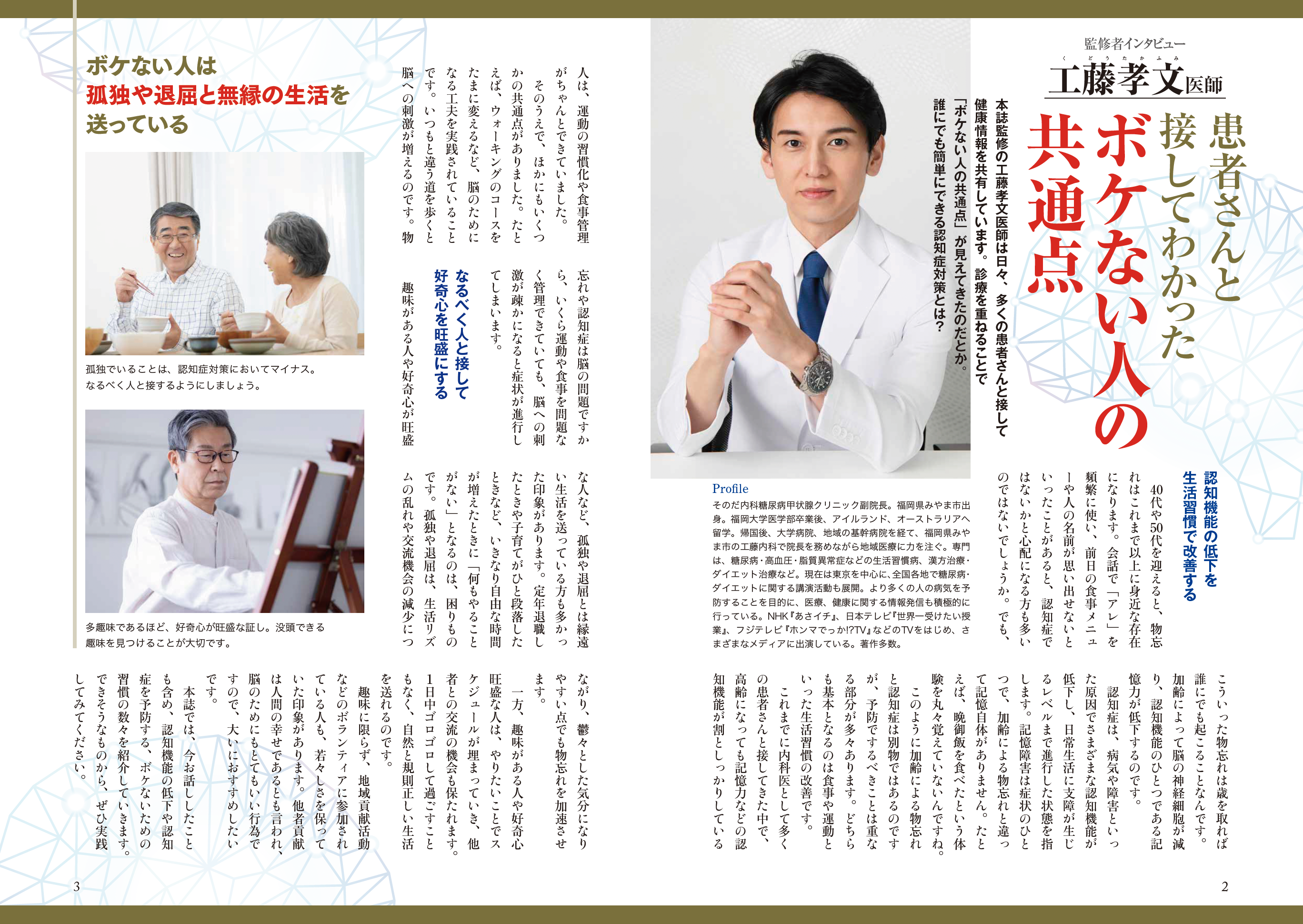 本誌監修の工藤孝文医師は、多くの患者さんと接してきた経験から、「ボケない人たちの習慣が見えてきた」といいます。その習慣の数々を医療の現場で患者さんたちに伝え、メディアを通して発表しています。