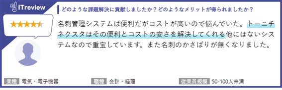東日印刷株式会社(本社:東京都江東区、社長:西川光昭、以下 TONICHI〈 https://tonichi-printing.co.jp 〉)のIT事業部門・T-NEXT本部が開発・販売する法人向け名刺管理アプリ「ネクスタ・メイシ」( https://tnexta.com/ ) が、アイティクラウド株式会社が運営する国内最大級のIT製品/SaaSのレビューサイト「ITreview」の「ITreview Grid Award 2026 Spring」の名刺管理ソフト部門において、認知度と顧客満足度の高いサービスに贈られる「LEADER」を5期連続で受賞しました。