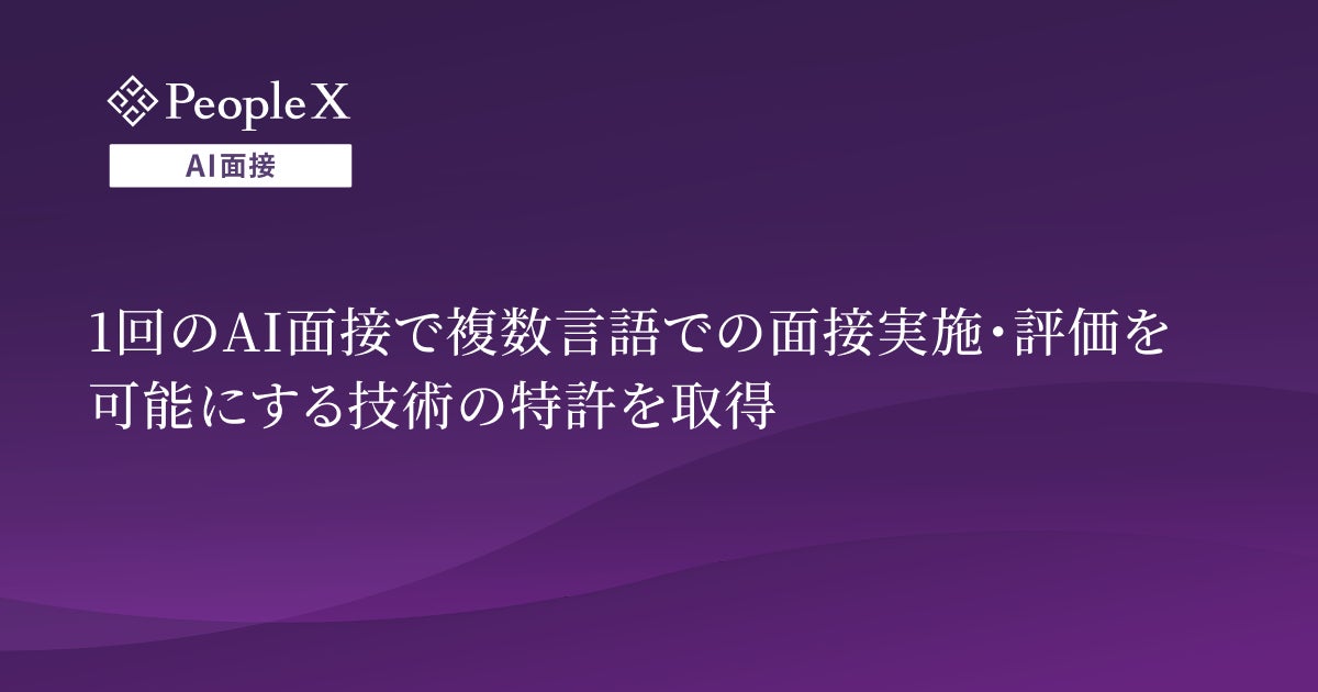 採用から活躍支援まで、AIで人事課題を解決する株式会社PeopleX(本社:東京都新宿区、代表取締役 CEO:橘 大地、以下:当社)は、当社が提供する対話型AI面接サービス「PeopleX AI面接」に関し、1回の面接で「日本語と英語」など複数の言語による面接実施と評価を可能とするAI対話技術について、特許を取得したことをお知らせいたします。
