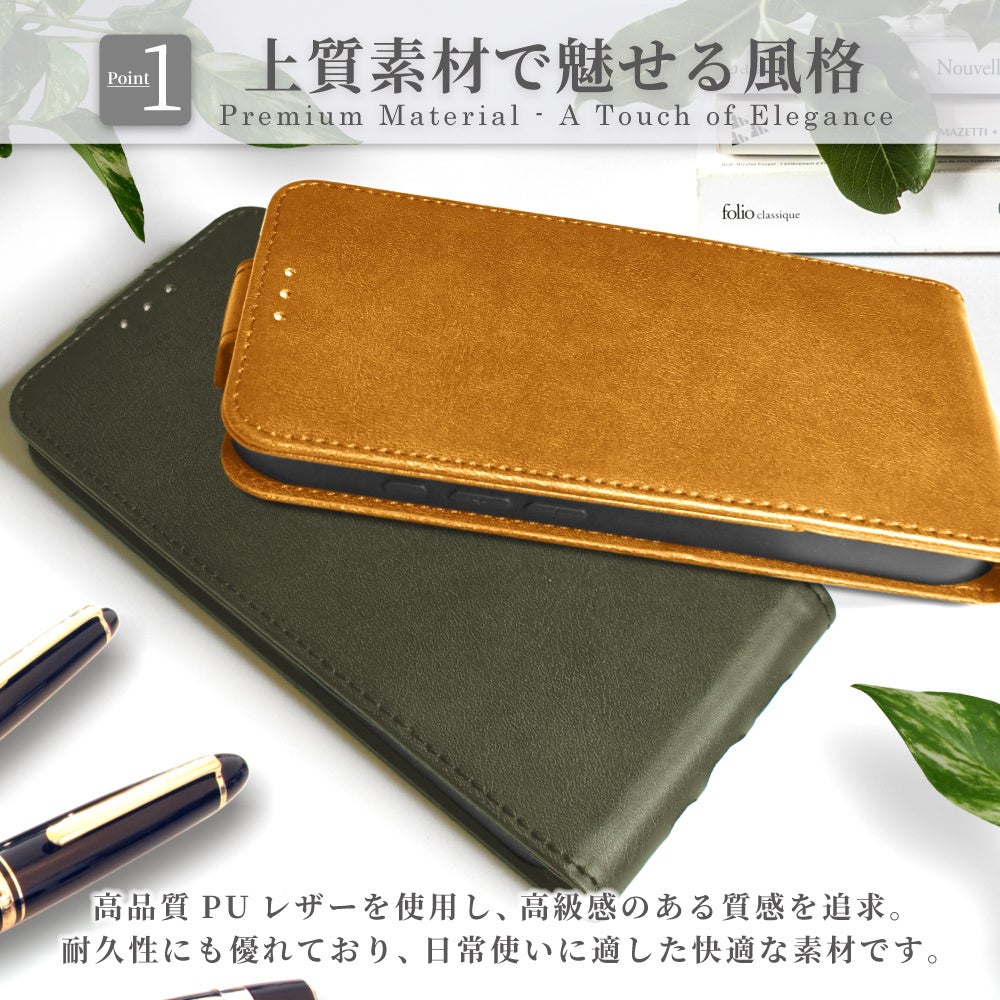ビジネスシーンにもカジュアルな場面にも自然に馴染む上品な印象の手帳型ケースです。