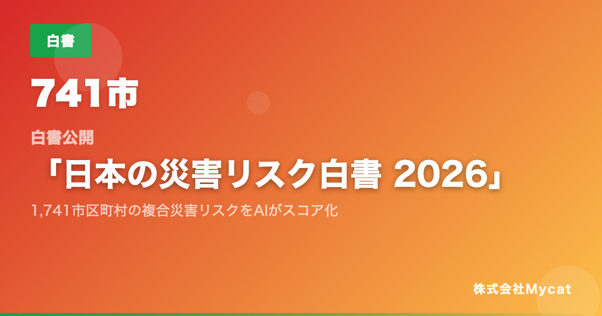 株式会社Mycat(本社:東京都目黒区)は、全国1,741市区町村の複合災害リスクを分析した「日本の災害リスク白書 2026」を無料公開いたしました。