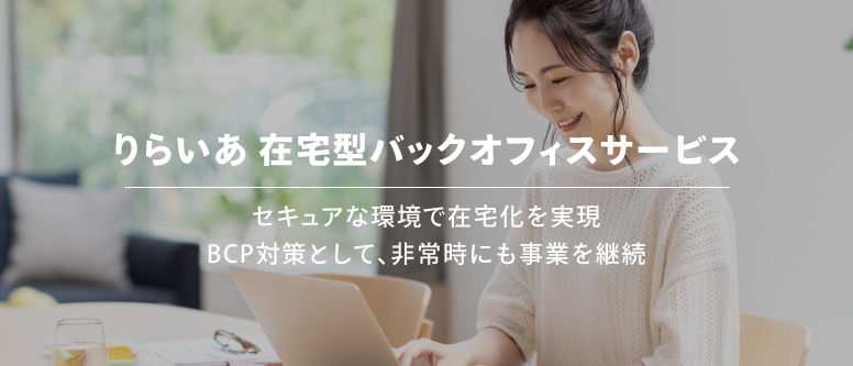 このような背景を受け、コンタクトセンター業務の在宅オペレーションの知見を活かしたセキュアな環境構築により、これらのリスクを低減させることで、バックオフィス業務を在宅化する「りらいあ 在宅型バックオフィスサービス」を提供開始しました。
