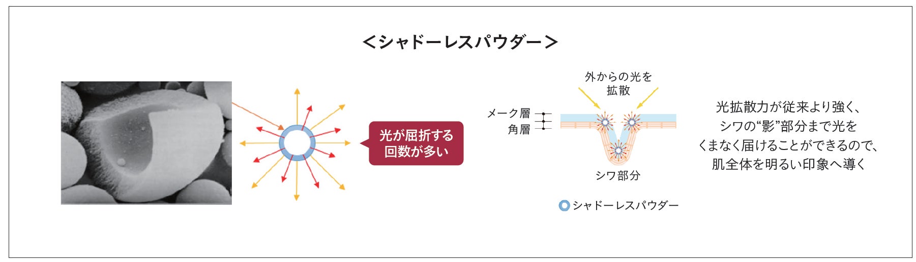 ① 光をシワの“影”まで巡らせる「シャドーレスパウダー」