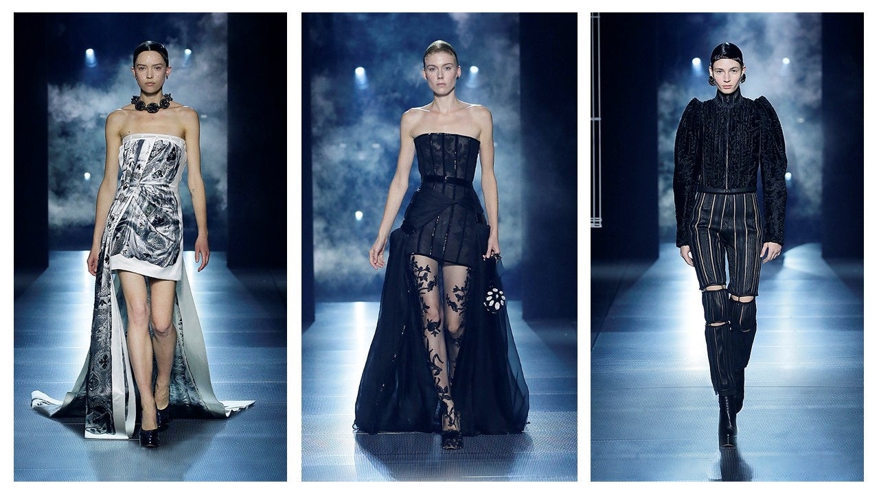 天空から舞い降りてくる女性たち。その天与の純粋さには、神々しい力が吹き込まれています。彼女たちのサイファイ的なシルエットには、ラグジュアリーなクラフツマンシップが用いられています。儀礼的な禁欲主義に星形のファンタジーが重ねられています。滑らかな生地はきらめく身体にドレープを描き、バゲットビーズが光を浴びて輝き、手刺しゅうを施したタイツはまるで皮膚のようにフィットしています。これらは、超越的なエネルギーに満ちたこの世ならざる姿。「ローマには、都市としての確かな精神性があります。それは必ずしも宗教的なものではなく重層的な歴史の中に存在しているものなのです」と、キム・ジョーンズは続けます。
