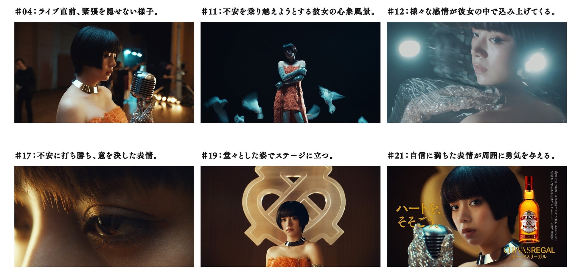 新CMシーバスリーガル「一滴残らず」篇は、池田エライザさんが自身の音楽ライブでパフォーマンスを行う直前の状況をメタファーに、周囲にインスピレーションを与えるその瞬間に向けて、様々な感情すべてを自身の心(ハート)の中で高めていく様を捉えた、高揚感溢れる作品です。【ストーリーボード】
