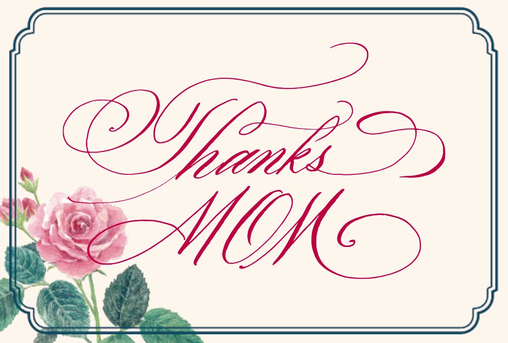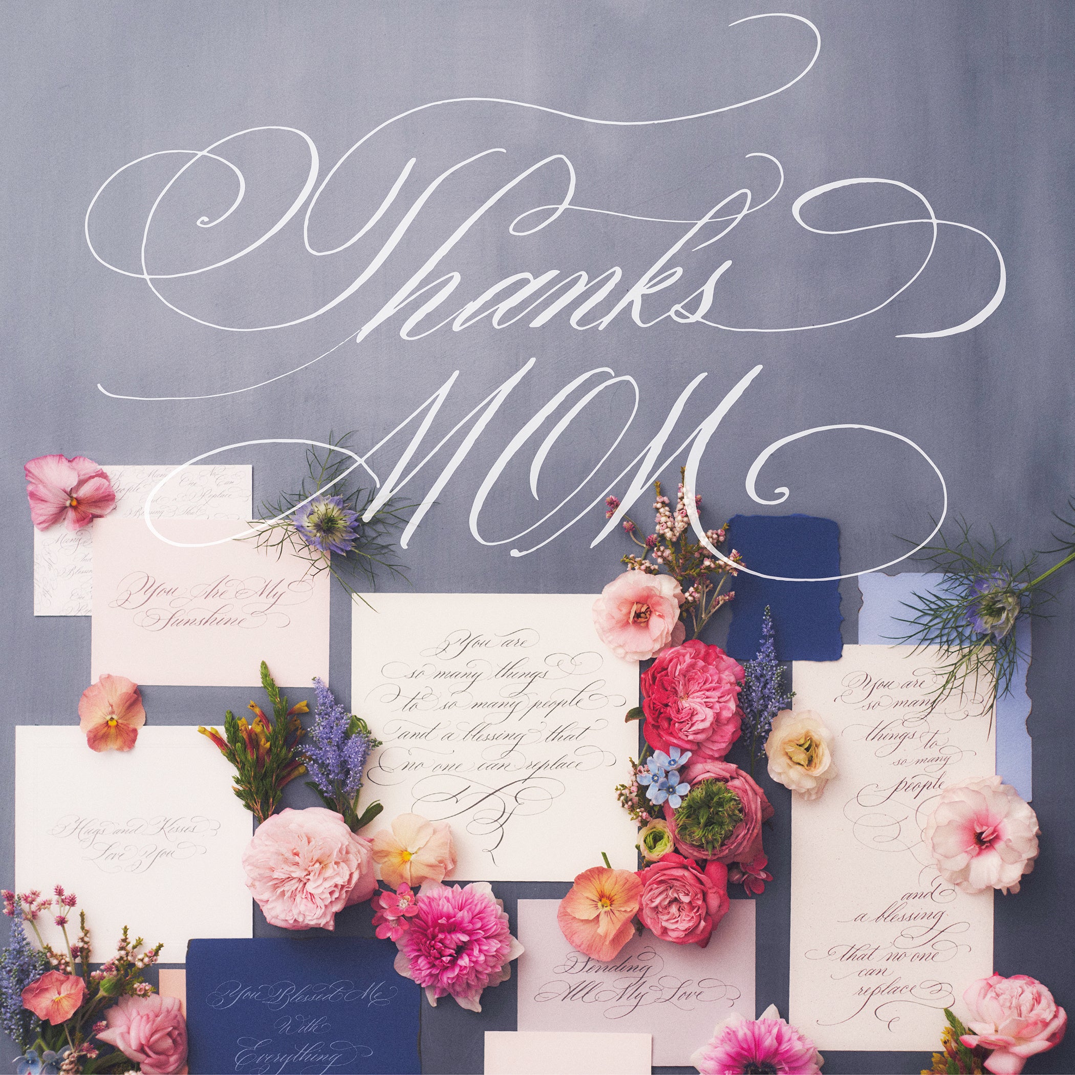 - カリグラフィーで綴る“THANKS MOM”のメッセージ