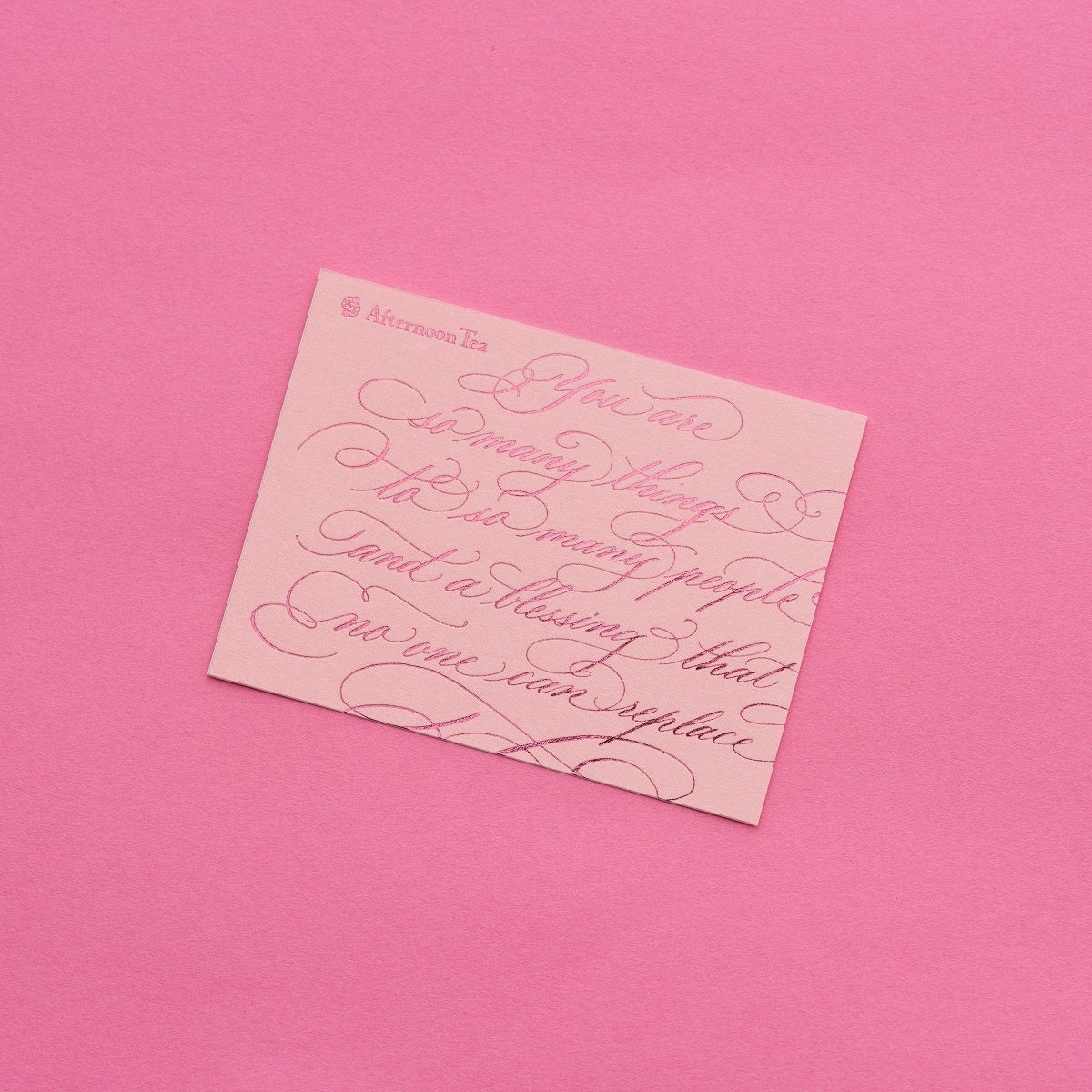 美しい手描き文字が、お母さんへの大切な想いを華やかに演出します。