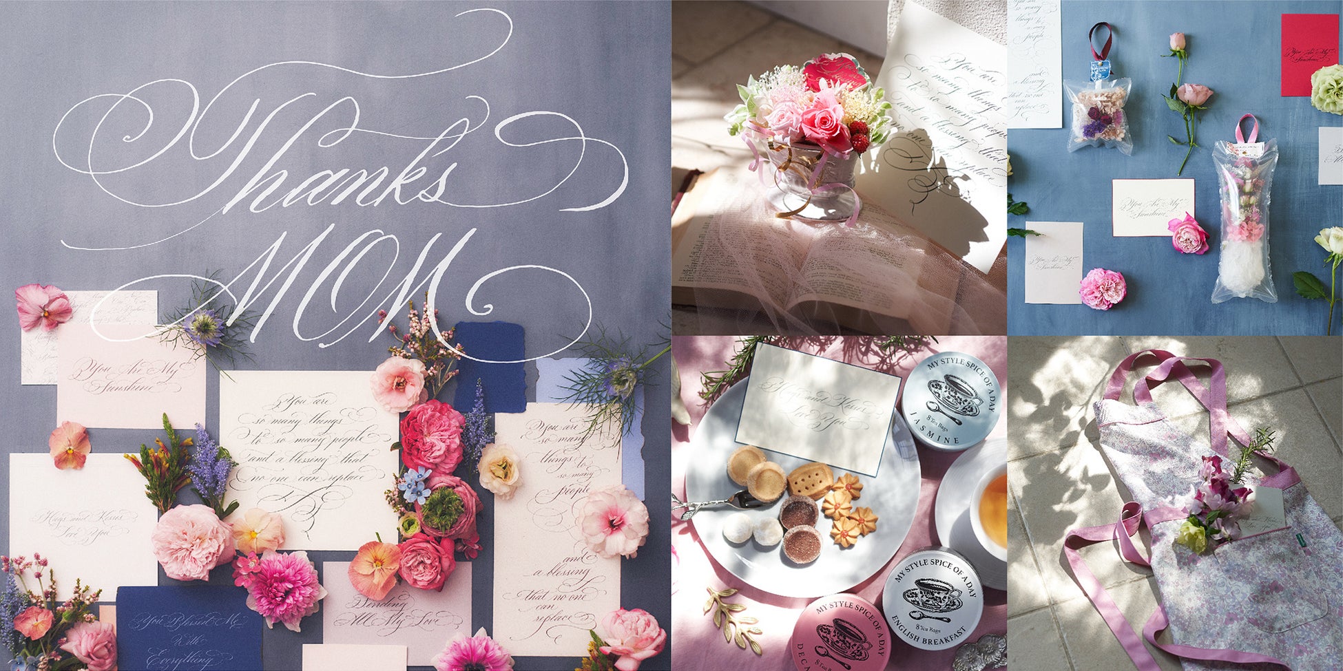 4月13日(水)から店頭・公式オンラインストアにて、母の日限定ラッピングがスタート。アイテムやラッピングにあしらったカリグラフィーは、インドネシア在住のカリグラフィー・アーティスト、ヴェロニカ・ハリムさんによる描きおろし。お母さんへの感謝の気持ちを華やかに表現しました。