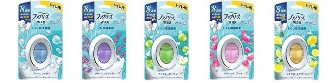 忙しい朝、家族が連続してトイレを使うときなどでも、気になるニオイを消臭し、爽やかに保ちます。「ファブリーズ W消臭 トイレ用消臭剤」は、5種類の香りのラインアップで販売いたします。