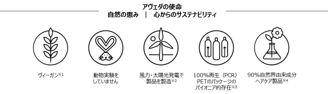 ※1 動物実験を行わず、動物由来の成分を配合していません。 ※2 製品の製造には、(米国の)再生可能エネルギークレジットやカーボンオフセットを通じてアヴェダの太陽電池や風力エネルギーによる電力が供給されています。更に、2021年末までに工場施設において、ULスキームによるごみ廃棄場のシルバー ゼロ ウェイスト認証を取得できるよう取り組んでいます。 ※3 85%以上のスキンケアおよびヘアスタイリングのPETパッケージとジャー容器は再生(PCR)PETを100%使用しています。 またアヴェダは美容業界において、100%再生(PCR)PETパッケージを採用した初めての化粧品会社です。 ※4 自然界由来成分とはISO16128の自然由来原料の定義に基づいたもので、成分の由来の大半が植物、非石油系ミネラルまたは水であることを意味します。また、90%はアヴェダ ヘアケア製品のアヴェダが算出したおおよその平均値です。