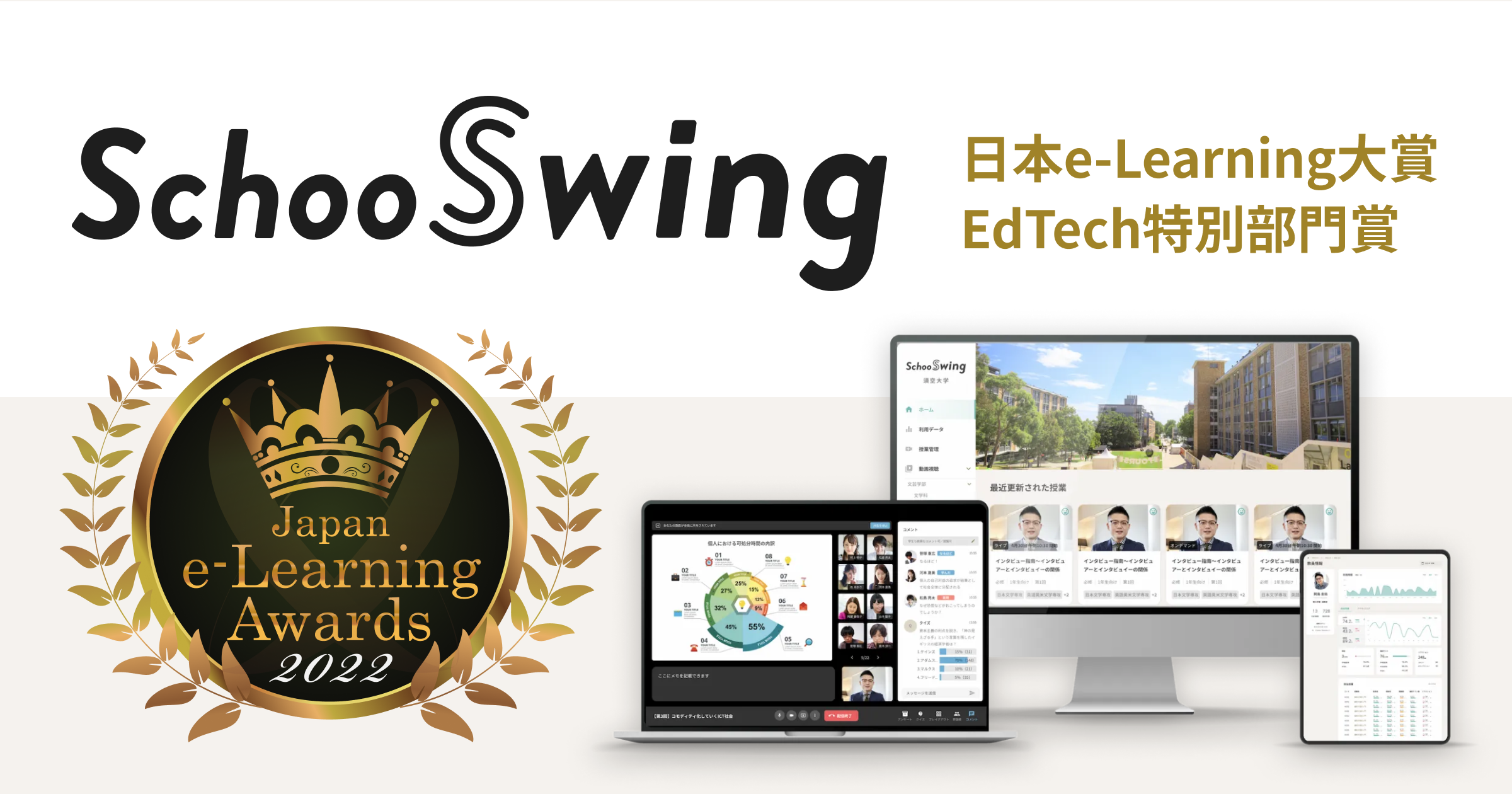 高等教育機関向けDXプラットフォーム「Schoo Swing」が、第19回 日本e-Learning大賞にて「EdTech特別部門賞」を受賞