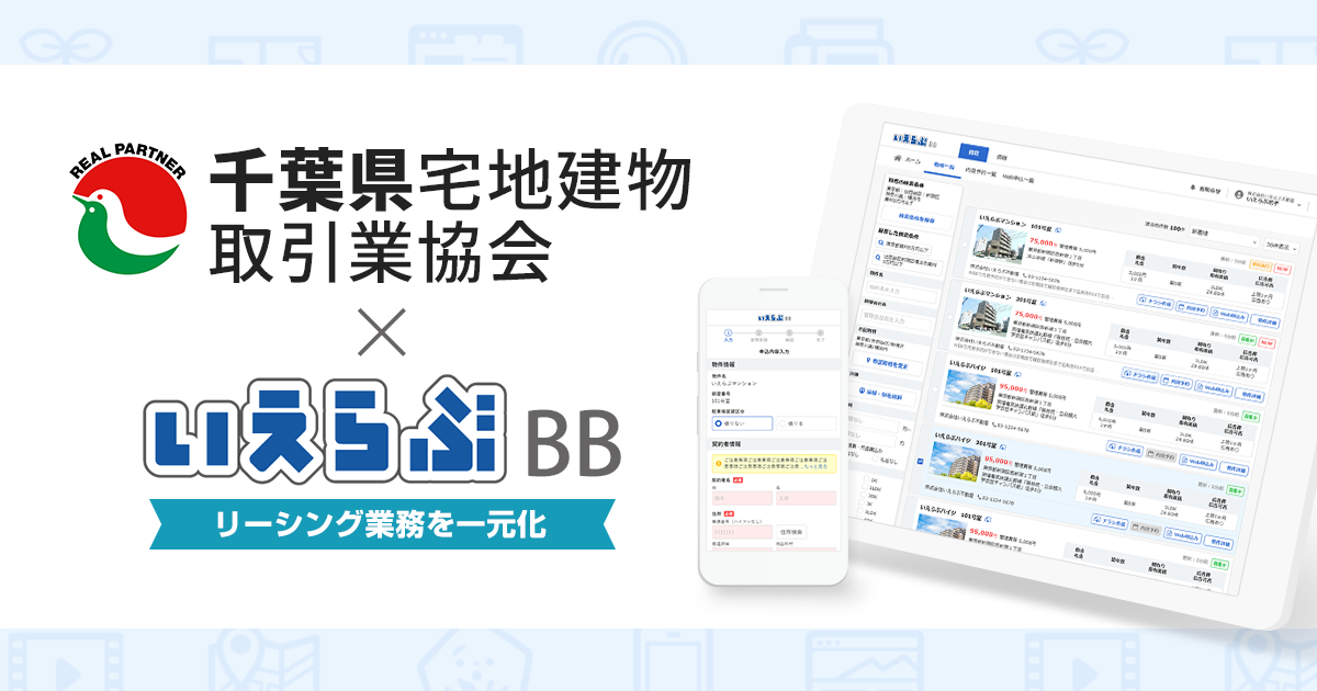 不動産テックに特化したバーティカルSaaSを提供する株式会社いえらぶGROUP(以下、いえらぶGROUP)は、千葉県の宅地建物取引業者約3,800社が加盟する一般社団法人千葉県宅地建物取引業協会(以下、千葉宅建)に、リーシング業務を一元化する「いえらぶBB」の提供を開始しました。