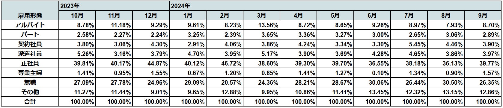 【表2:ドラピタにおける求人応募者の雇用形態推移】