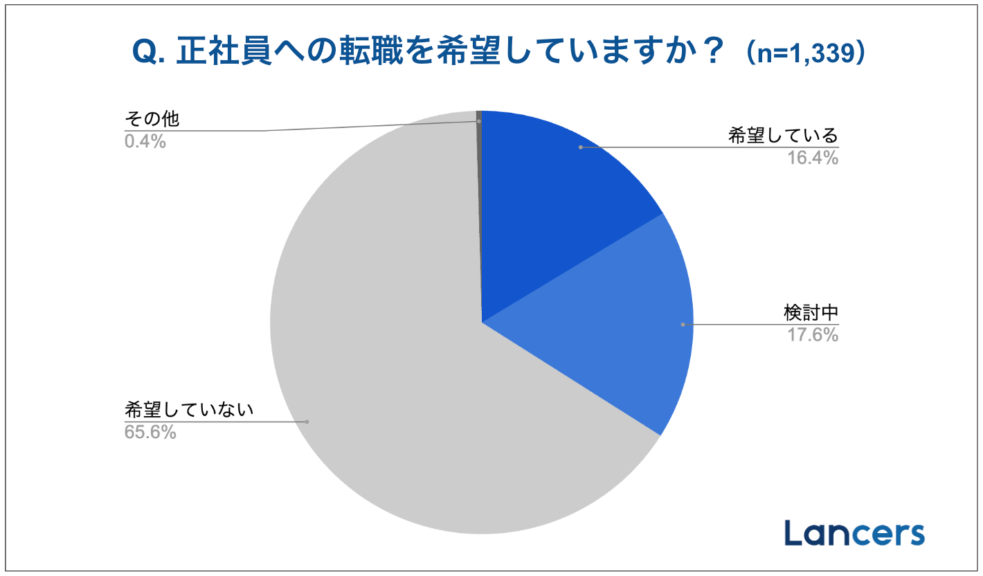 ランサーズが運営するITフリーランスエージェントサービス「Lancers Agent」の直近1年間においても、(案件次第では)正社員登用を希望するフリーランスは約3割、企業側が正社員採用を希望する案件も約1割となっていることから、双方のニーズに適切に対応しサポートするため「フリーランス転職」の提供を開始いたしました。