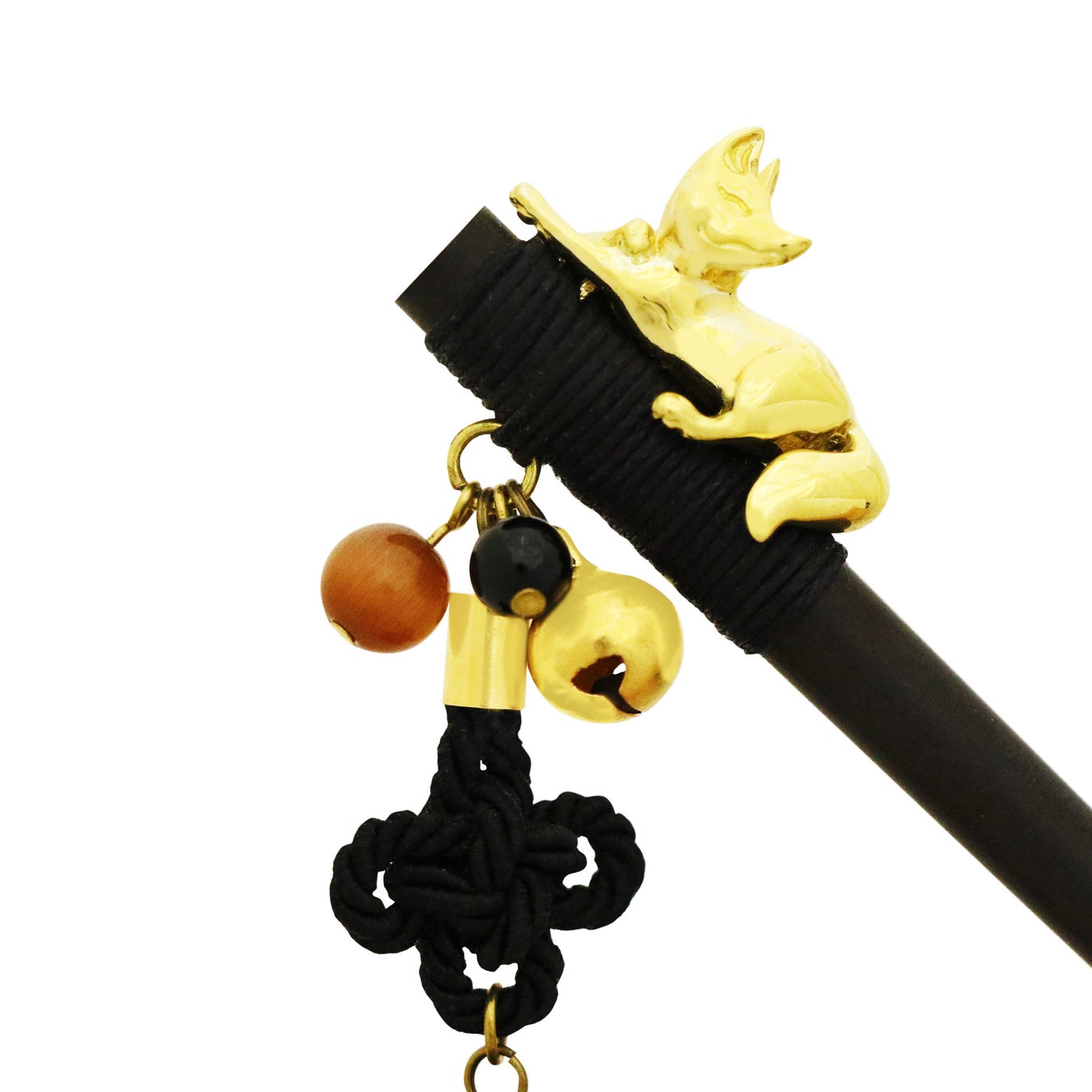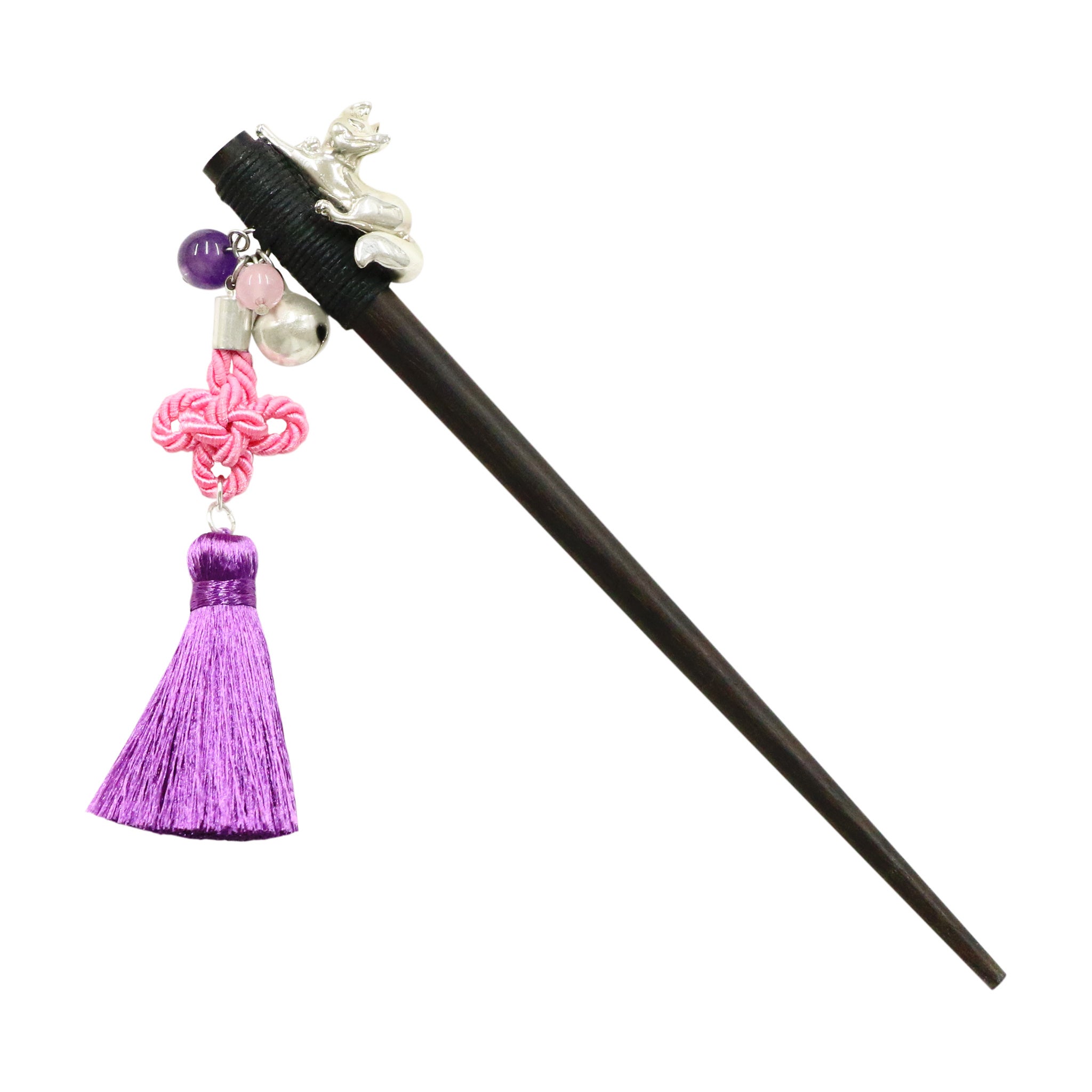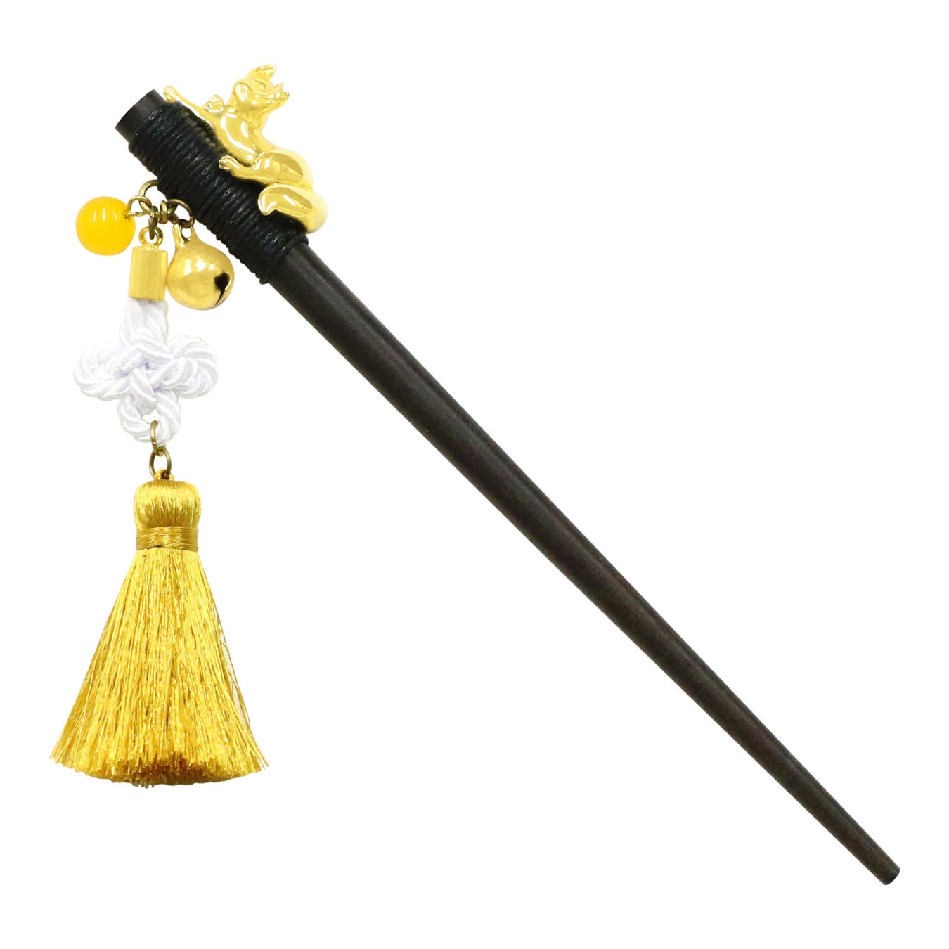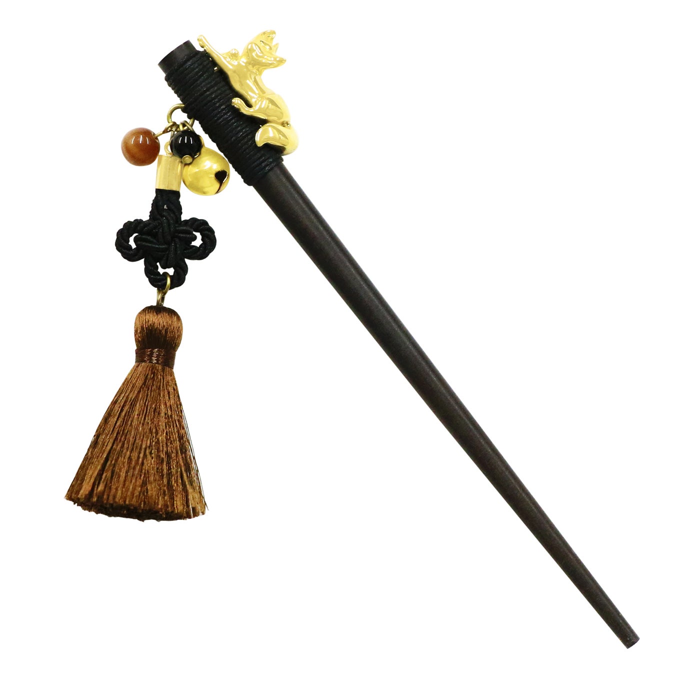 京都のシンボル・伏見稲荷を彷彿とさせる狐と、魔除けの意を持つ伝統的な「総角(あげまき)結び」を組み合わせた「木登狐一本簪」に、待望の京都店舗限定色が仲間入りしました。