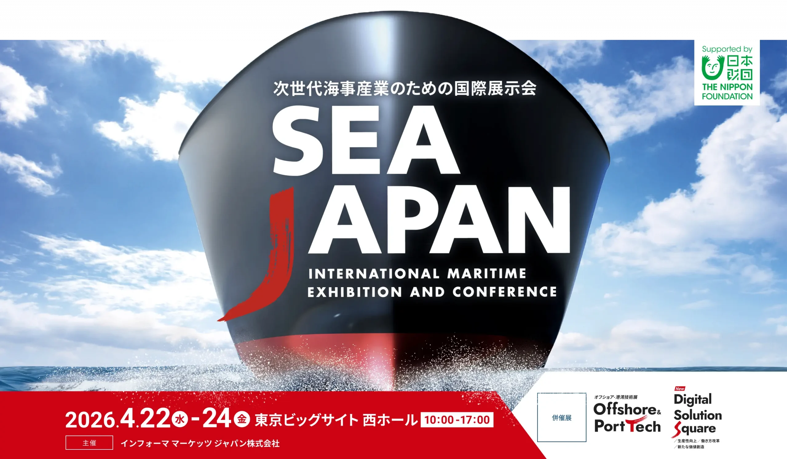 インフォーマ マーケッツ ジャパン株式会社(本社:東京都千代田区、代表:クリストファー・イブ)は、4月22日(水)から24日(金)までの3日間、東京ビッグサイト(東京都江東区)で、国際海事展「Sea Japan 2026」を開催します。