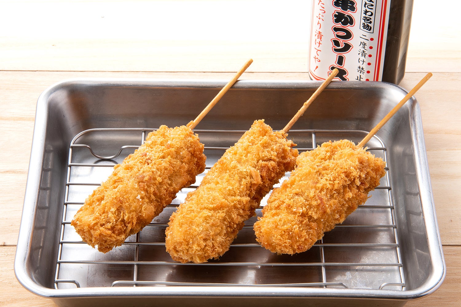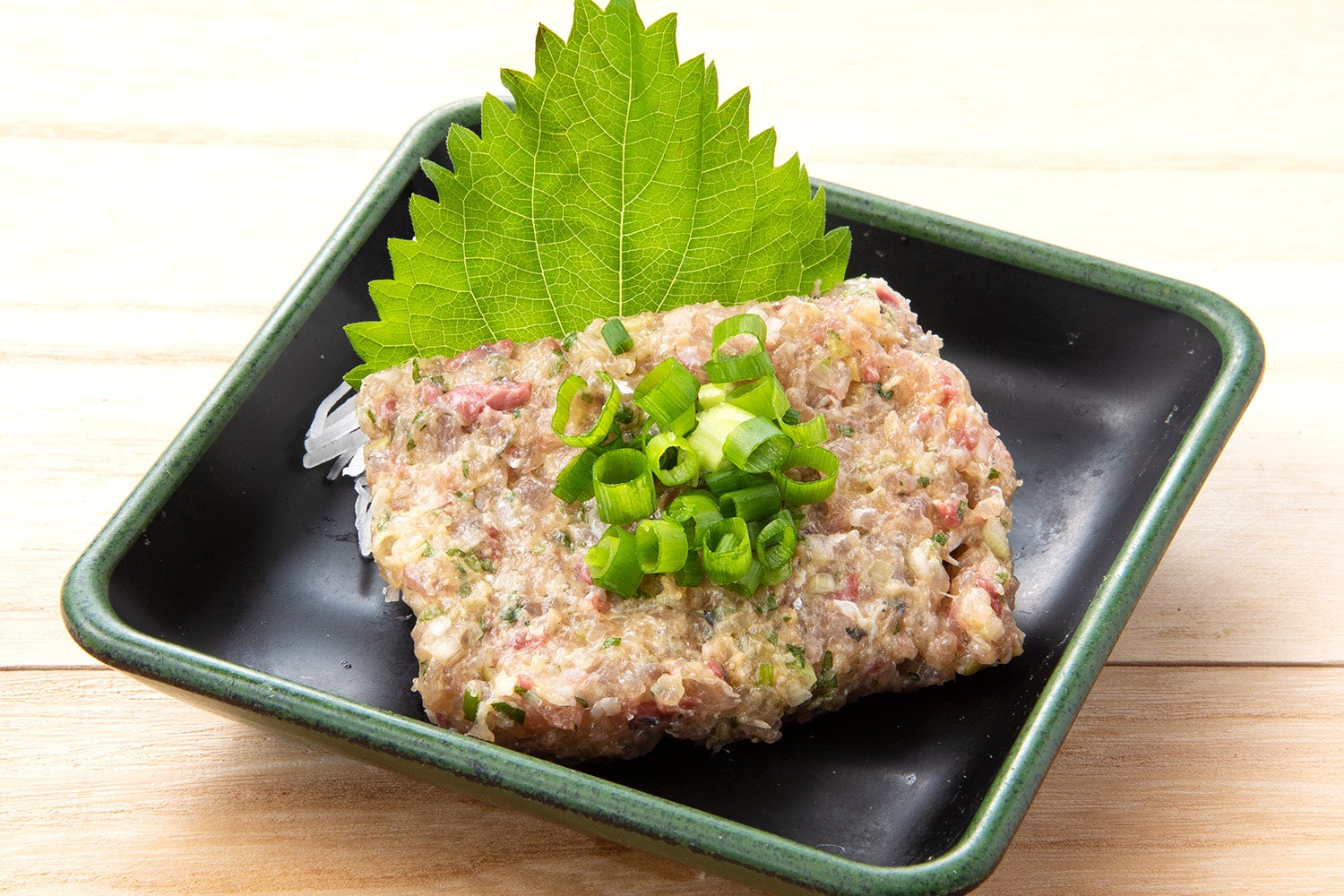 大衆酒場といえば、「焼き鳥」と「焼きとん」。どれでも1本110円と手軽な価格で、お好きなだけ楽しむことができます。白湯スープでじっくり煮込んだ豚モツの名物「煮込み」(450円)は、クリーミーな味わいで人気の逸品。一緒に提供される特製辛味噌を溶かせば味変が楽しめます。この他、「串カツ」(1本180円)、「鮪ブツ」「なめろう」といった新鮮刺身(各390円)、「下町中華のニラ玉」(290円)、「満天ポテサラ」(290円)、「玉子サンドの具で喰らうアジフライ」(390円)など、みんな大好き酒場の王道つまみをそろえます。