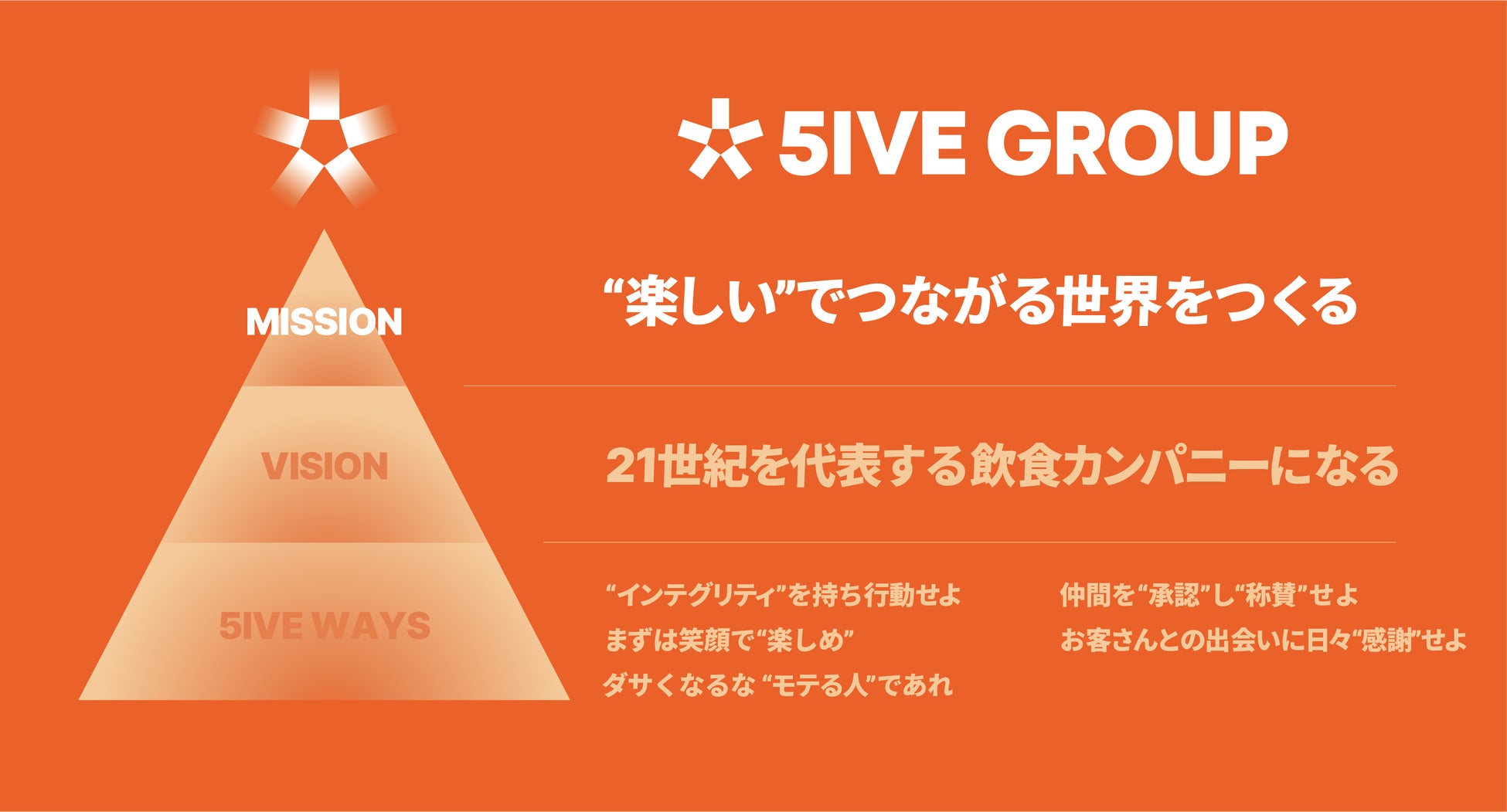 ファイブグループは飲食店を「飲み食いする場」だけではなく「生きていくのに欠かせない”食”を通じて人と人がつながる場」と捉えています。