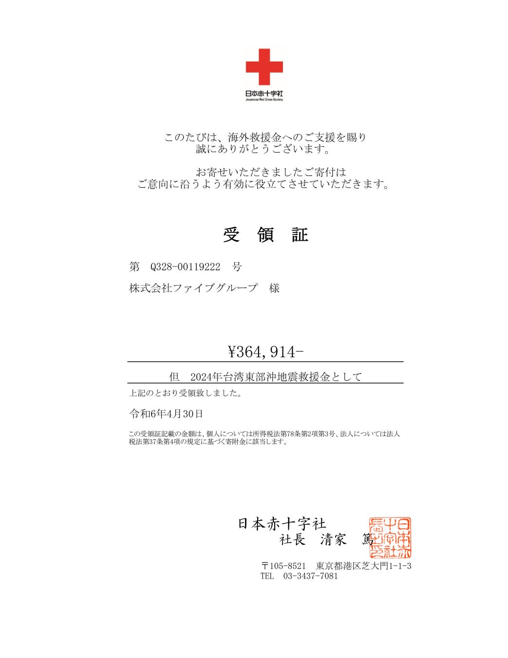 ・日本赤十字/能登半島地震への寄付・台湾東部沖地震への寄付