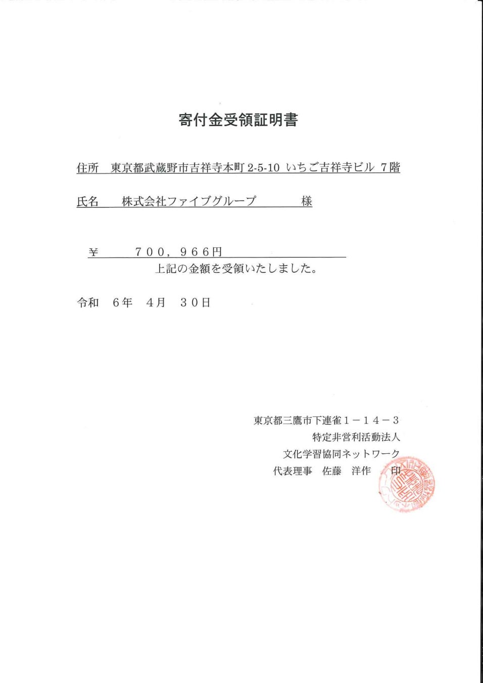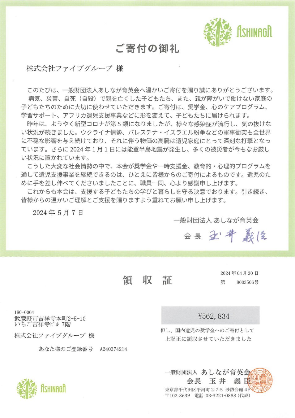 2023年チャリティー活動ご協力のお礼とご報告|株式会社ファイブグループ