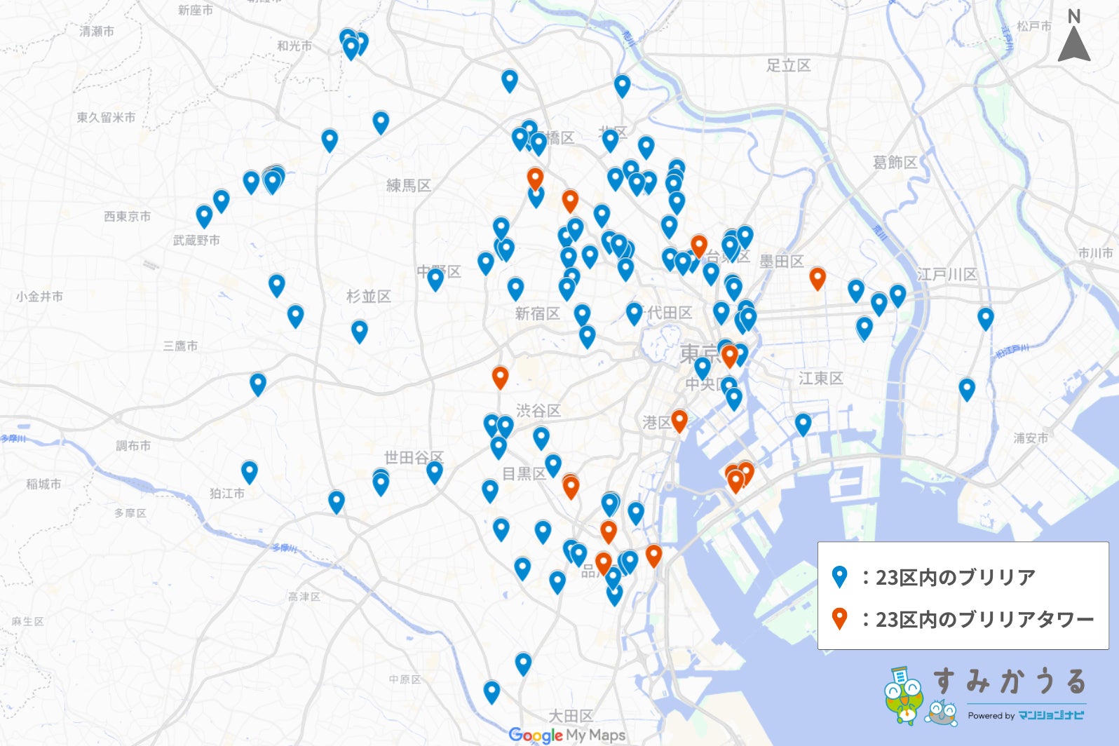 東京23区内におけるブリリアシリーズの分布データを分析すると、ターゲット層に合わせた明確な立地戦略が見えてきます。