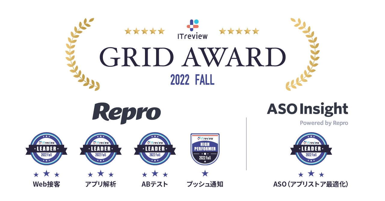 Reproの2製品が「ITreview Grid Award 2022 Fall」で最高位「Leader」を受賞