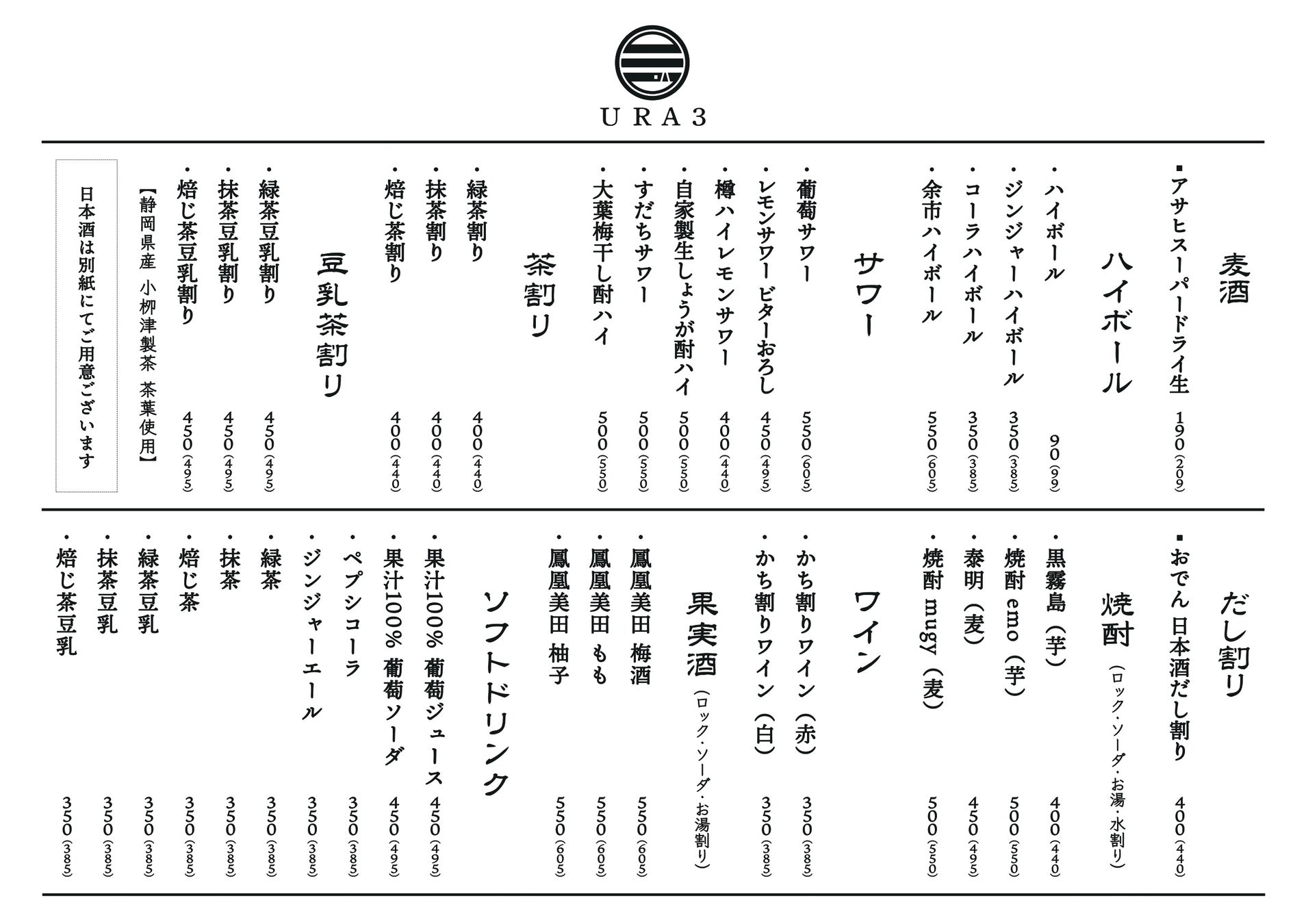 三呑み屋で定番となっている「ハイボール90円(税込み99円)、生ビール190円(税込み209円)」という激安価格は変わらず、定番から季節限定まで幅広く取り揃えた日本酒に、店舗仕込みの自家製サワー、静岡県産の抹茶豆乳割りなど各種ご用意しました。