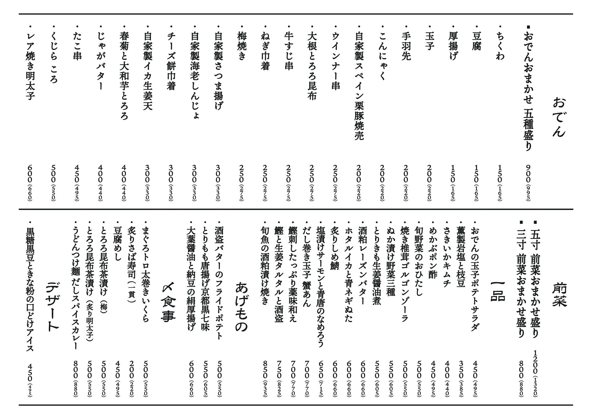 営業時間: 日~木 17:30~25:00、金・土・祝前日 17:30~27:00