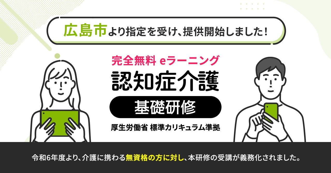 認知症介護基礎研修 広島市より指定を受け、無料提供を開始しました。