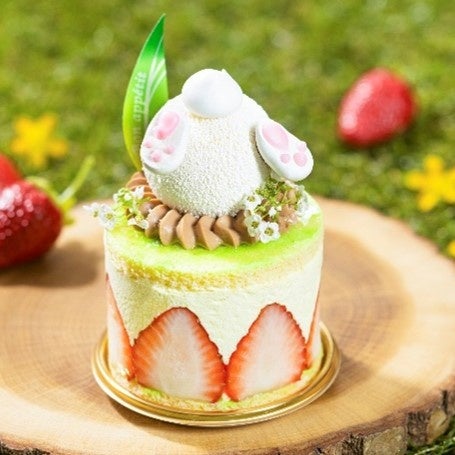 地面に潜ってたまごを隠す、ホワイトチョコレートムースでできたイースターバニーのお尻がキュートな、遊び心満載の一品です。ピスタチオのムースリーヌに、相性抜群の甘酸っぱい旬のいちごを大胆にあしらいました。わんぱくなうさぎの姿がイースターのワクワク感を演出します。