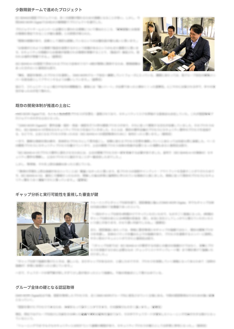認証取得に当たって現場での試行錯誤や、取得を通じて得られた気づき・ノウハウが、担当者の生の声とともに詳しく紹介されています。