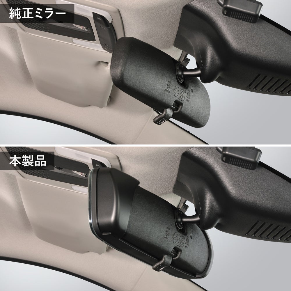 本製品はホンダ・マツダの純正ルームミラー専用設計、後付け感を払拭しており装着後も車内になじむデザインを目指しました。また、ワイドな視界と自然な距離感を両立する、当社独自の曲面率「3000SR」※を採用しています。