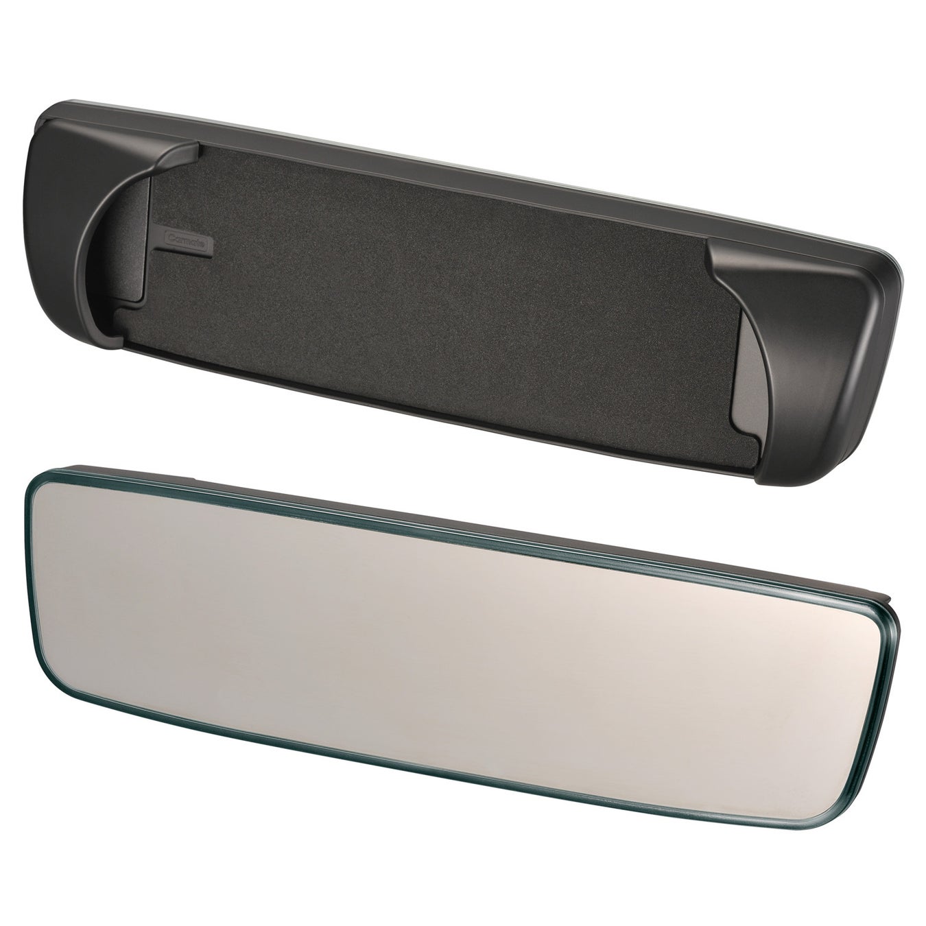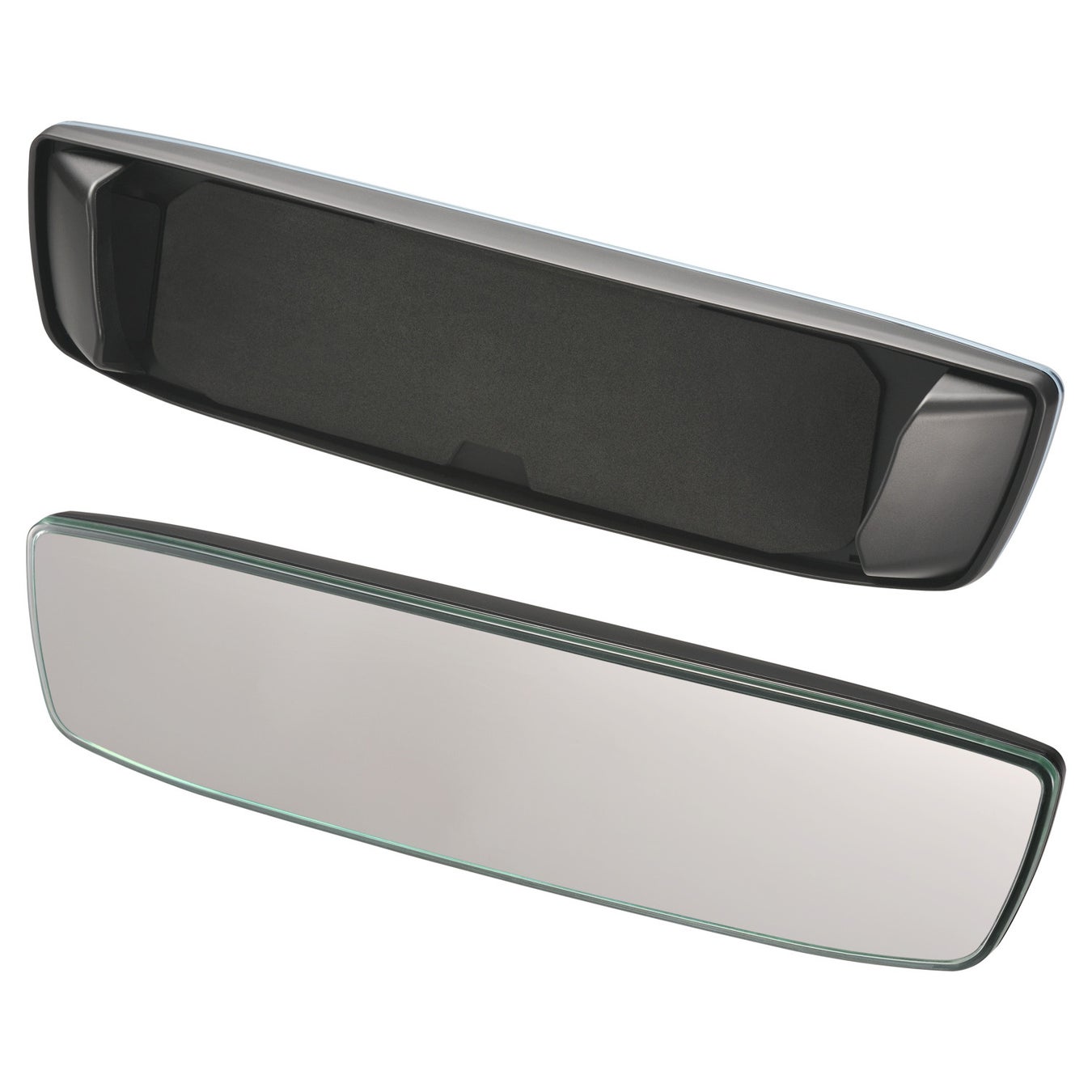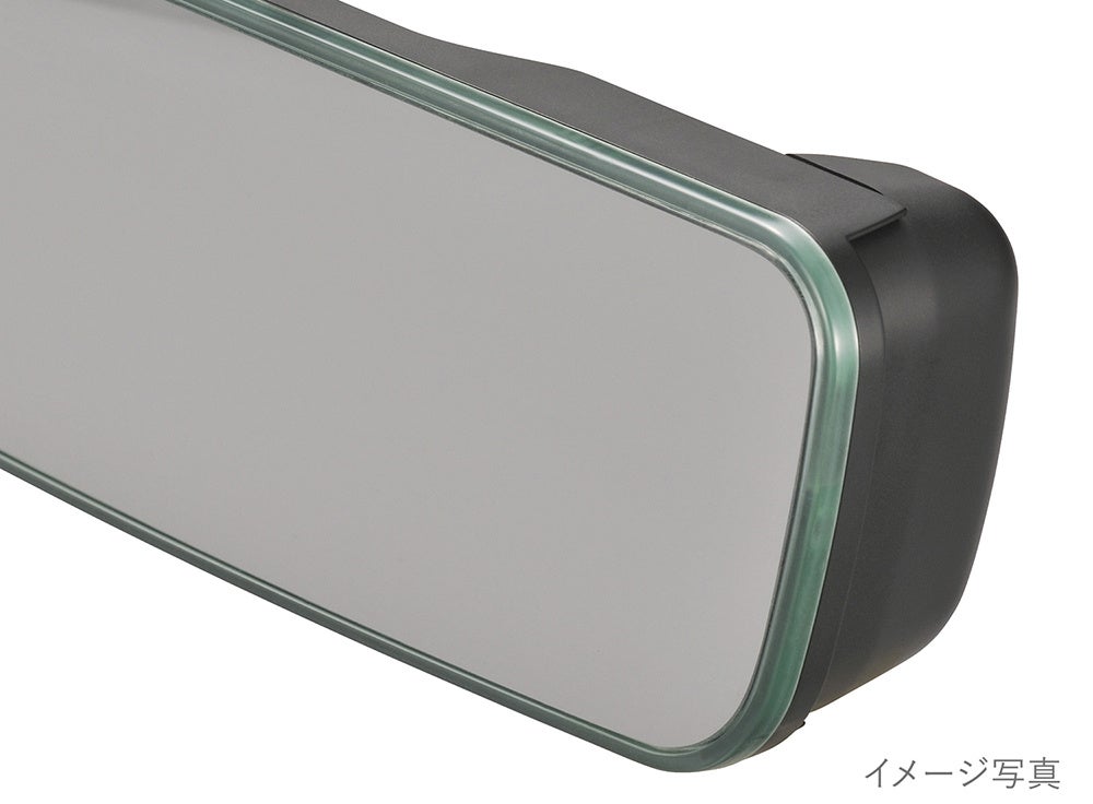 半径3000mmの球体から切り出された緩曲面鏡を使用しています(3000SRとは半径3000mmの球体の曲率を指す)。 鏡の曲率が大きな(1400SR等)曲面鏡は広い範囲を映し出すことができますが、反面、映し出される像が小さくなり実際の距離感より遠く感じます。 本製品では「3000SR」曲面鏡を使用し、ワイドな視界と自然な距離感を両立しています(純正ルームミラーに対して約1.7~1.8倍の後方視界を実現しています)。
