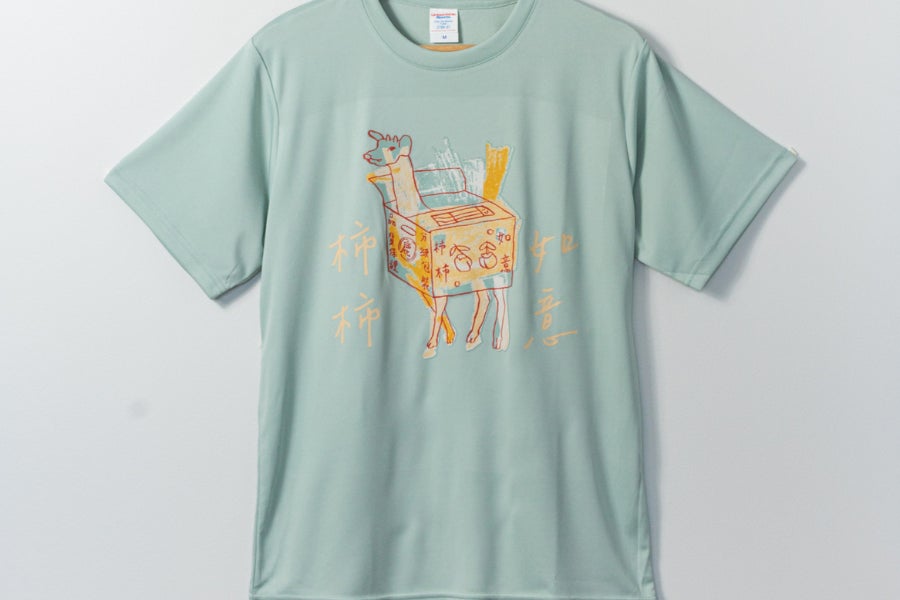 台湾で親しまれている言葉遊び"柿柿如意”のフレーズとイラストをプリントしたTシャツです。