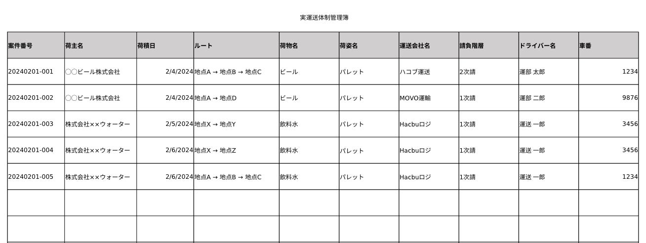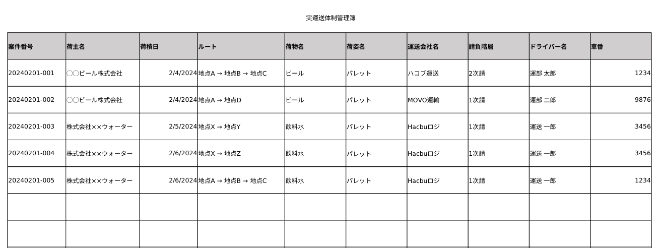 2月13日、「貨物自動車運送事業法」の改正案が閣議決定されました。改正案で実運送管理簿の作成が義務化されることに合わせ、実運送体制管理簿を簡単に出力できるようにしました。
