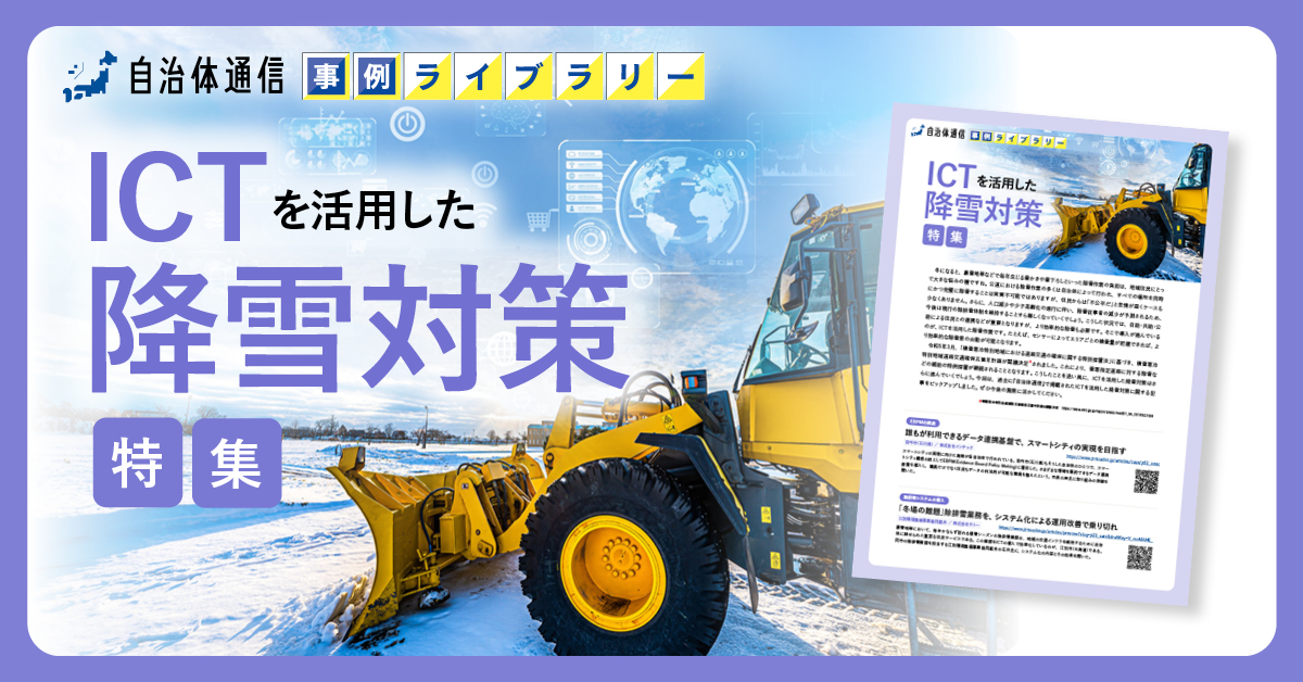 令和5年3月、「積雪寒冷特別地域における道路交通の確保に関する特別措置法」に基づき、※積雪寒冷特別地域道路交通確保五箇年計画が閣議決定されました。これにより、雪寒指定道路に対する除雪などの補助の特例措置が継続されることとなります。こうしたことを追い風に、ICTを活用した降雪対策はさらに進んでいくでしょう。今回は、過去に『自治体通信』で掲載されたICTを活用した降雪対策に関する記事をピックアップしました。ぜひ今後の施策に活かしてください。