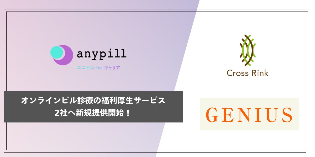 オンラインピル診療の福利厚生サービス「エニピルforキャリア」、福利厚生としてジーニアスとクロスリンクの2社へ提供開始