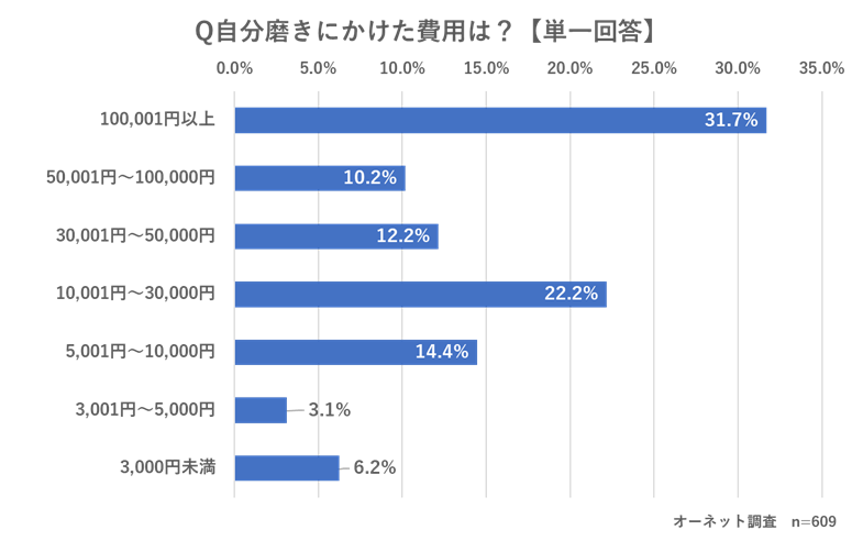 【6】自分磨きにかけた金額は「100,001円以上」が3割。自分磨きに自己投資をしている女性は多い