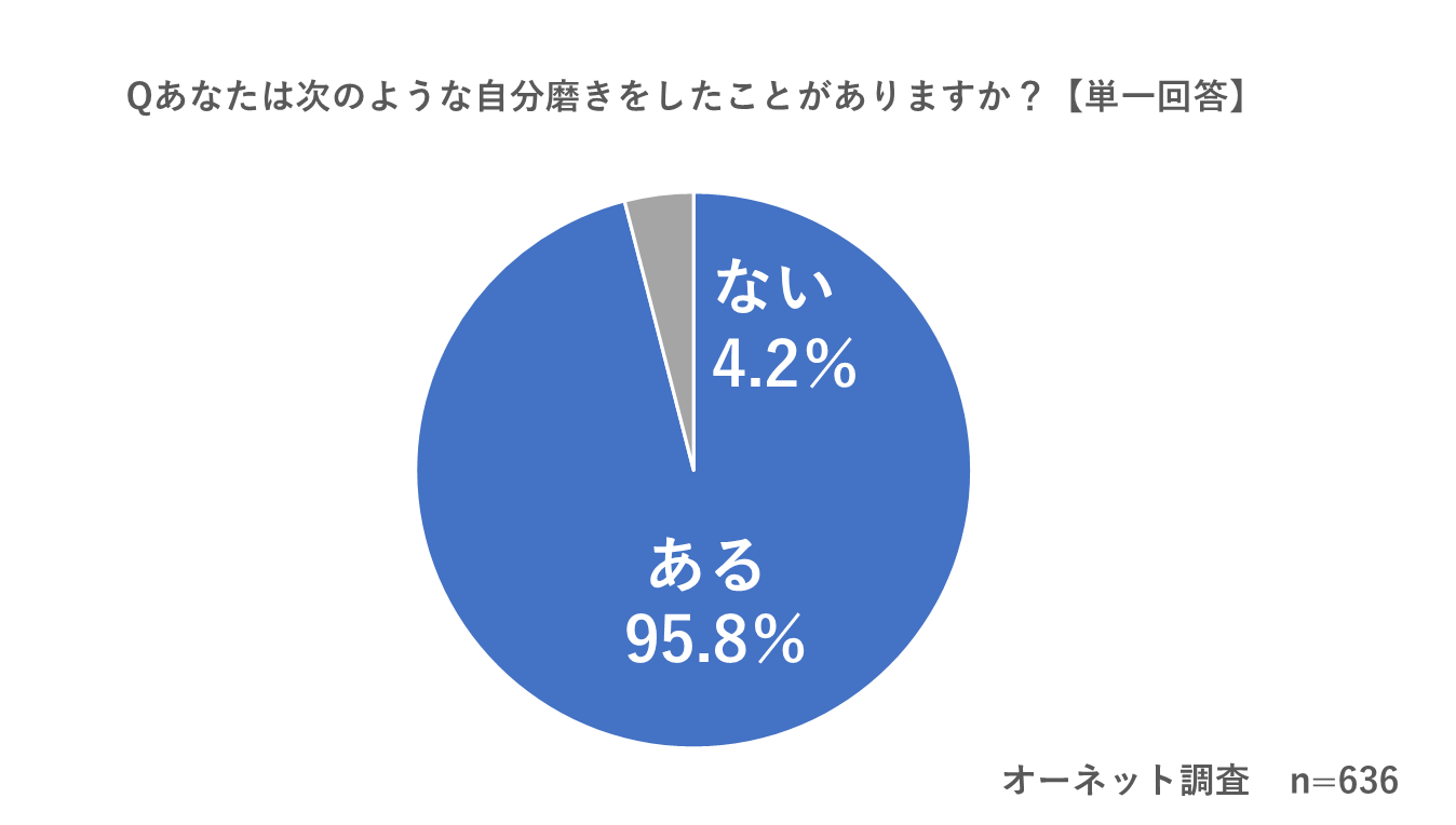 【1】自分磨きを行ったことが「ある」と回答した人が9割以上自分磨きをしたことが「ある」と回答した人が95.8%、「ない」と回答した人が4.2%という結果に。婚活中の女性のほとんどが何らかの「自分磨き」に取り組んでいることが分かりました。