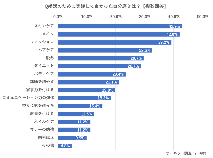 婚活中女性の9割以上が自分磨きをしている!婚活中にやって良かった自分磨きは「スキンケア・メイク・ファッション」