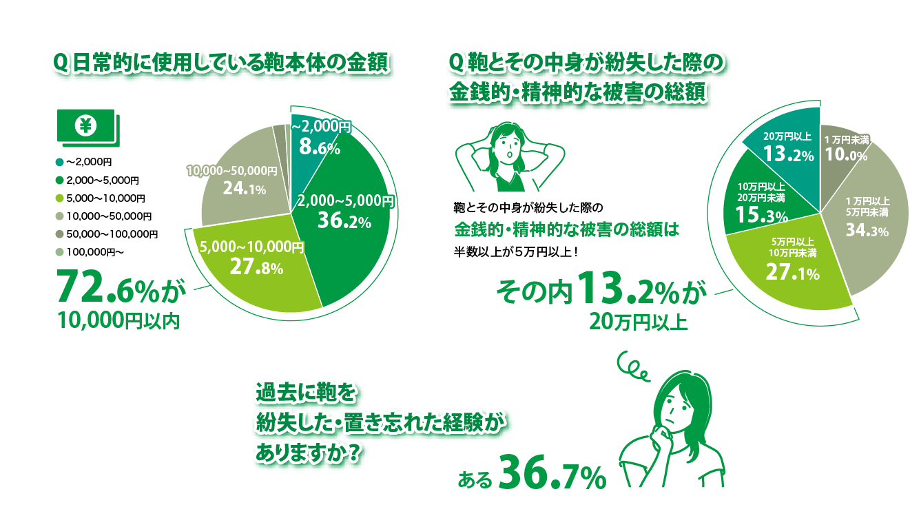そして実際に36.7%もの人が「鞄を紛失または置き忘れた経験がある」と答えています。