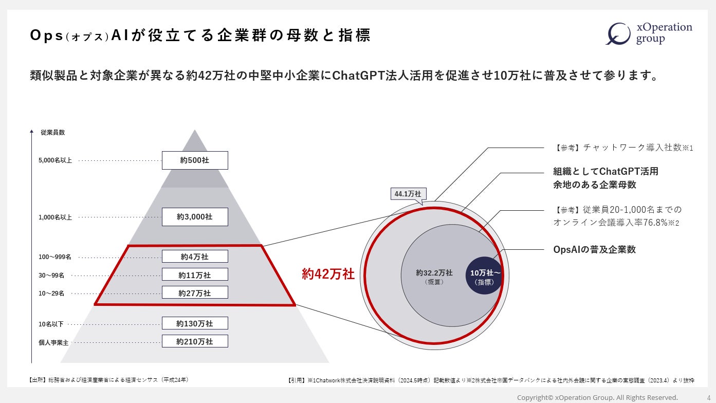 42万社という母数において、OpsAIは10万社以上に活用していただける製品となっていくように今後も機能強化・普及活動を行っていきます。