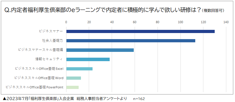 『内定者福利厚生倶楽部』のeラーニングには、そのような希望にも対応できるビジネスマナーや情報セキュリティ講座、Office基礎など社会人への意識改革に必要なコンテンツが多数用意されております。