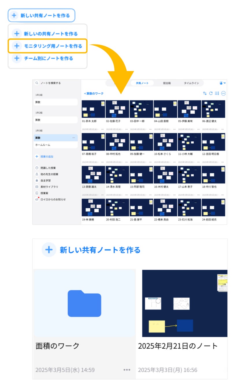 クラス全員分の共有ノートをワンクリックで自動作成できる機能を追加します(2025年夏頃 予定)。