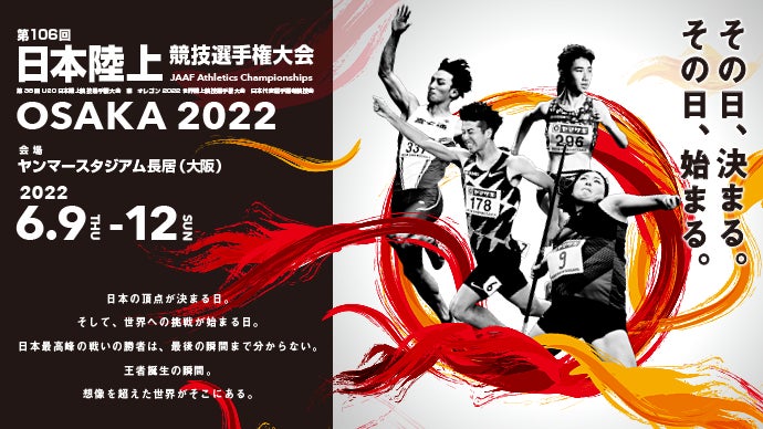 2022年6月9日~12日、ヤンマースタジアム長居にて「第106回日本陸上競技選手権大会」を開催いたします。