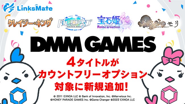『DMM GAMES』にて配信中のゲームタイトルがMVNOサービス「LinksMate(リンクスメイト)」のカウントフリーオプション対象コンテンツとして2022年12月26日(月)より追加!
