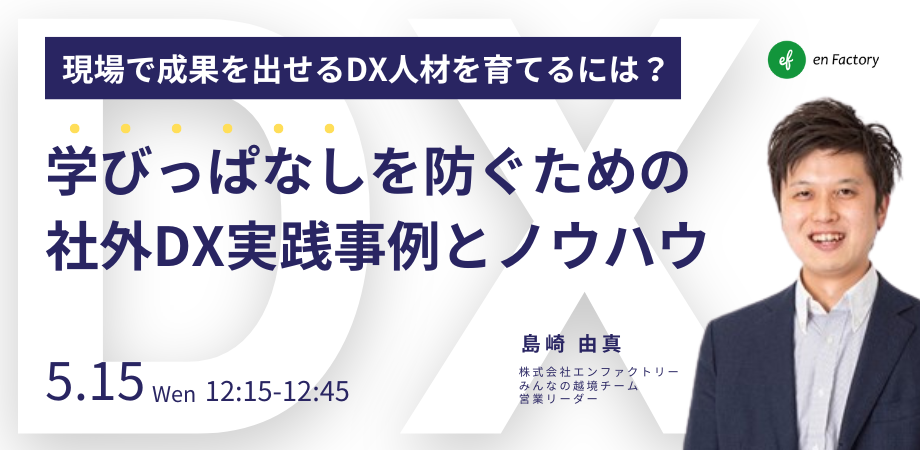 DX人材育成はしばしばE-Learningや座学研修だけに終始してしまいますが、DXプロジェクトをリーダーとして推進する人材を育成するには、実践・経験機会の提供(=場数)が欠かせません。しかし、異動等の社内での機会提供には限界があります。その解決策として、近年、DXの実践経験を積む場として越境を活用する企業が増えています。