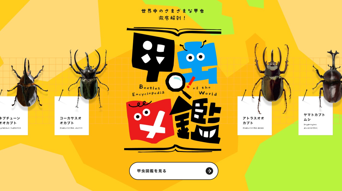 「世界中の珍しいカブトムシやクワガタ(甲虫)が見て触れられる展示スペース」、日本の甲虫の「放し飼いスペース」に加え、甲虫を詳しく学べる「資料展示スペース」もあり!】